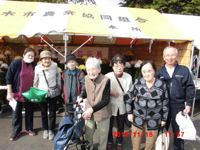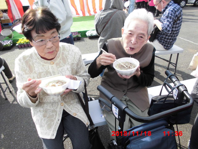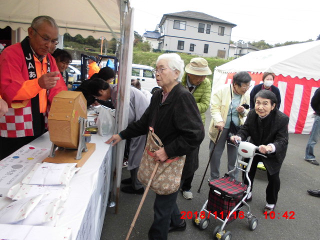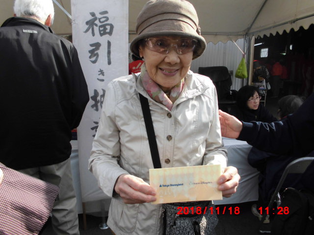 11月18日(日)JA玉川支所農業まつりへ16名のご入居者と外出をしてまいりました。55周年記念行事で、抽選くじの特賞が18名に当たる豪華景品となっており、なんとご入居者2名の方が特賞のディズニーランドペアチケットを当てました。お二人共ご自分では行けないと、ご家族へプレゼントされるとおっしゃり、ご家族孝行が出来たようでした。その他のご入居者も豚汁やうどんを食べるなど農業まつりを楽しまれておりました。