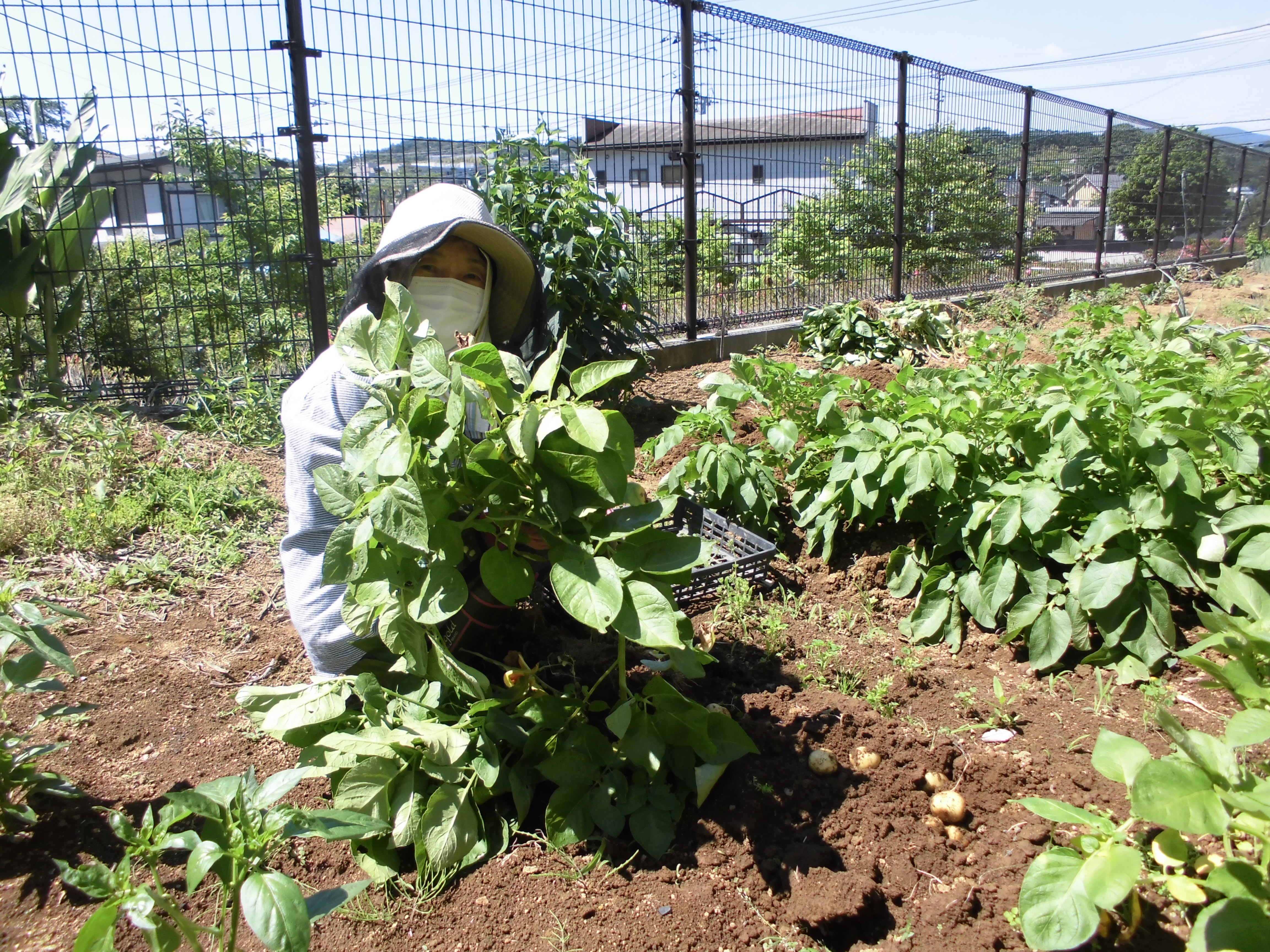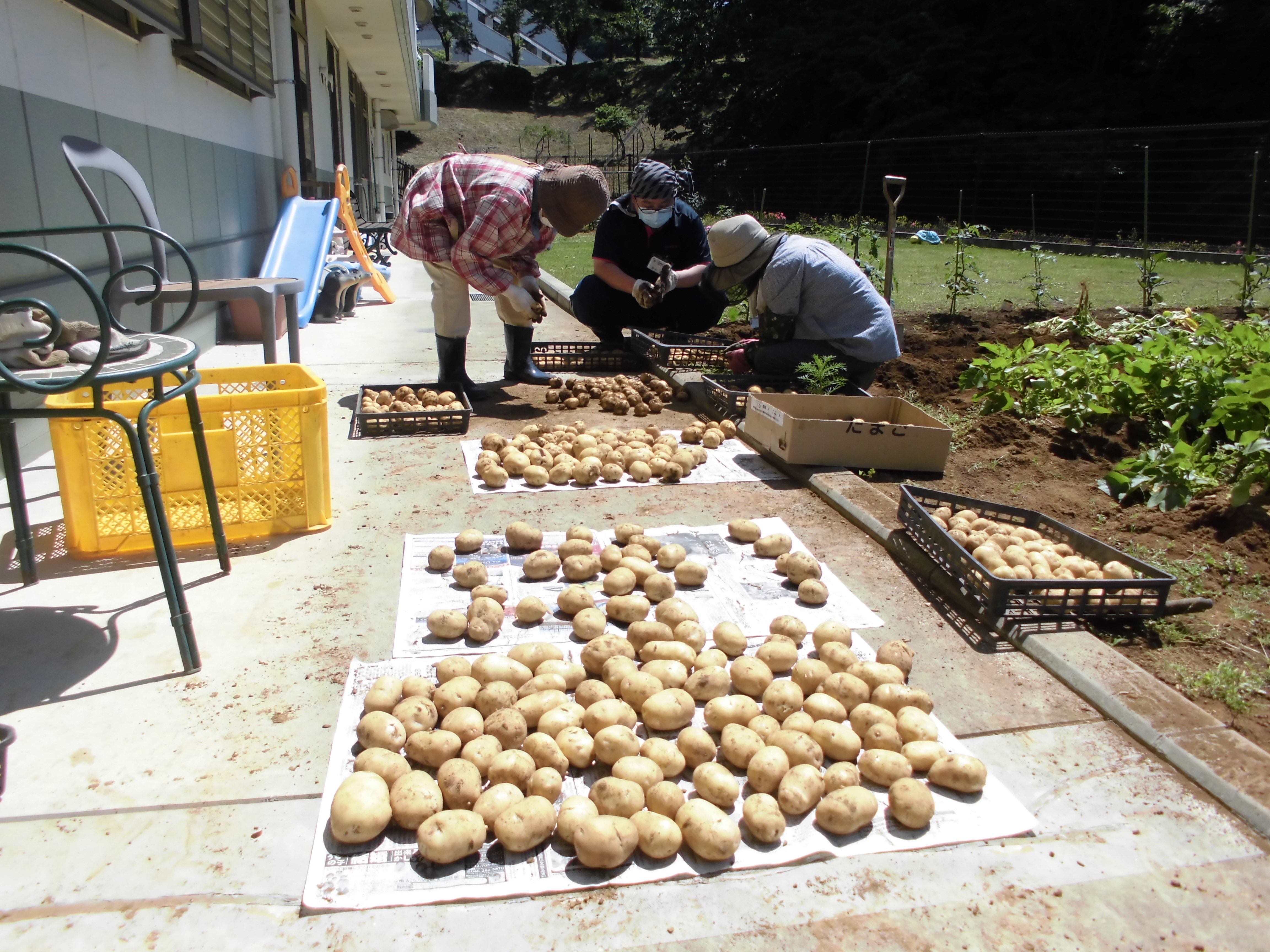 5月25日(火) 小町山グリーンホーム敷地内にある畑でじゃがいも掘りを行いました。 入居者様が2月より育て始め、ようやく収穫です。