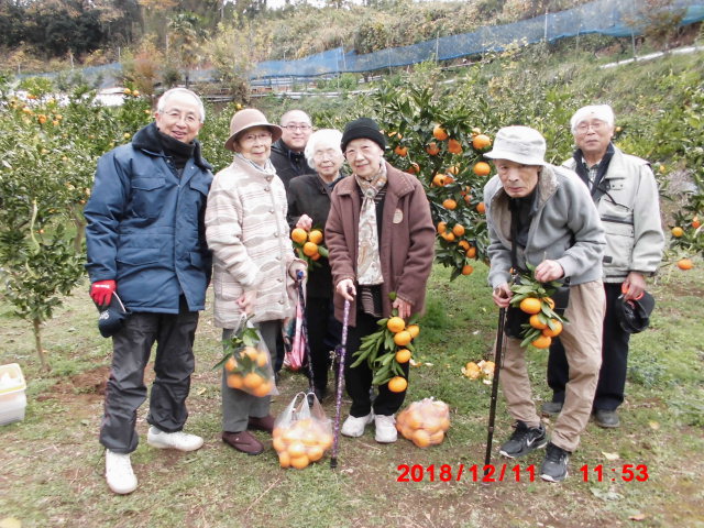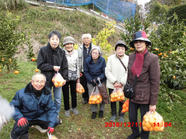 12月11日(火)9時30分より3班に分けて、厚木市小野の三橋昇様みかん畑に「みかん狩り」に行きました。13名の入居者様が参加され、それぞれにみかん狩りを楽しまれ、袋一杯のみかんを持ち帰られました。三橋昇様ありがとうございました。