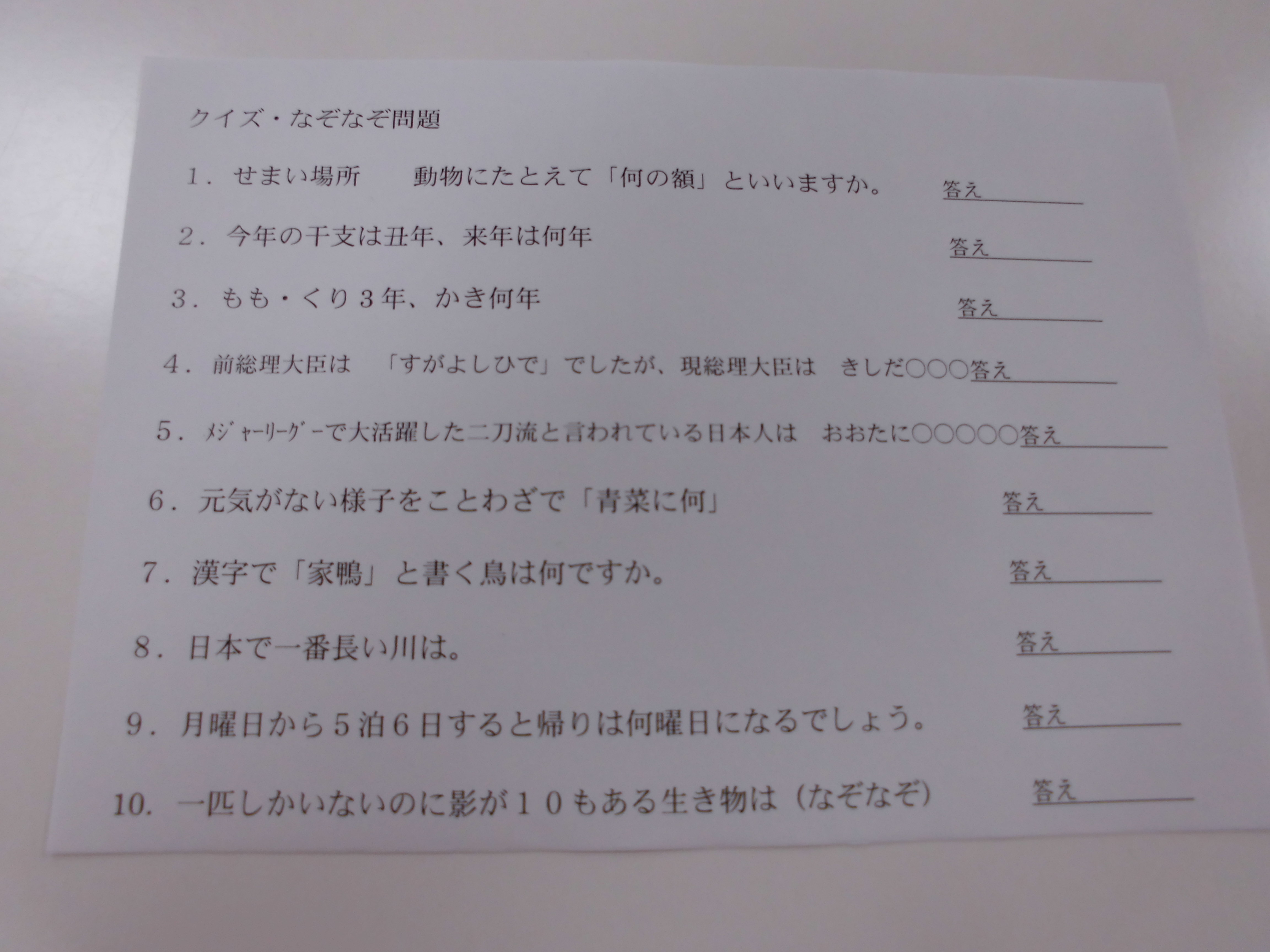 食後のあとは、クイズ大会とカラオケ大会を行いました。