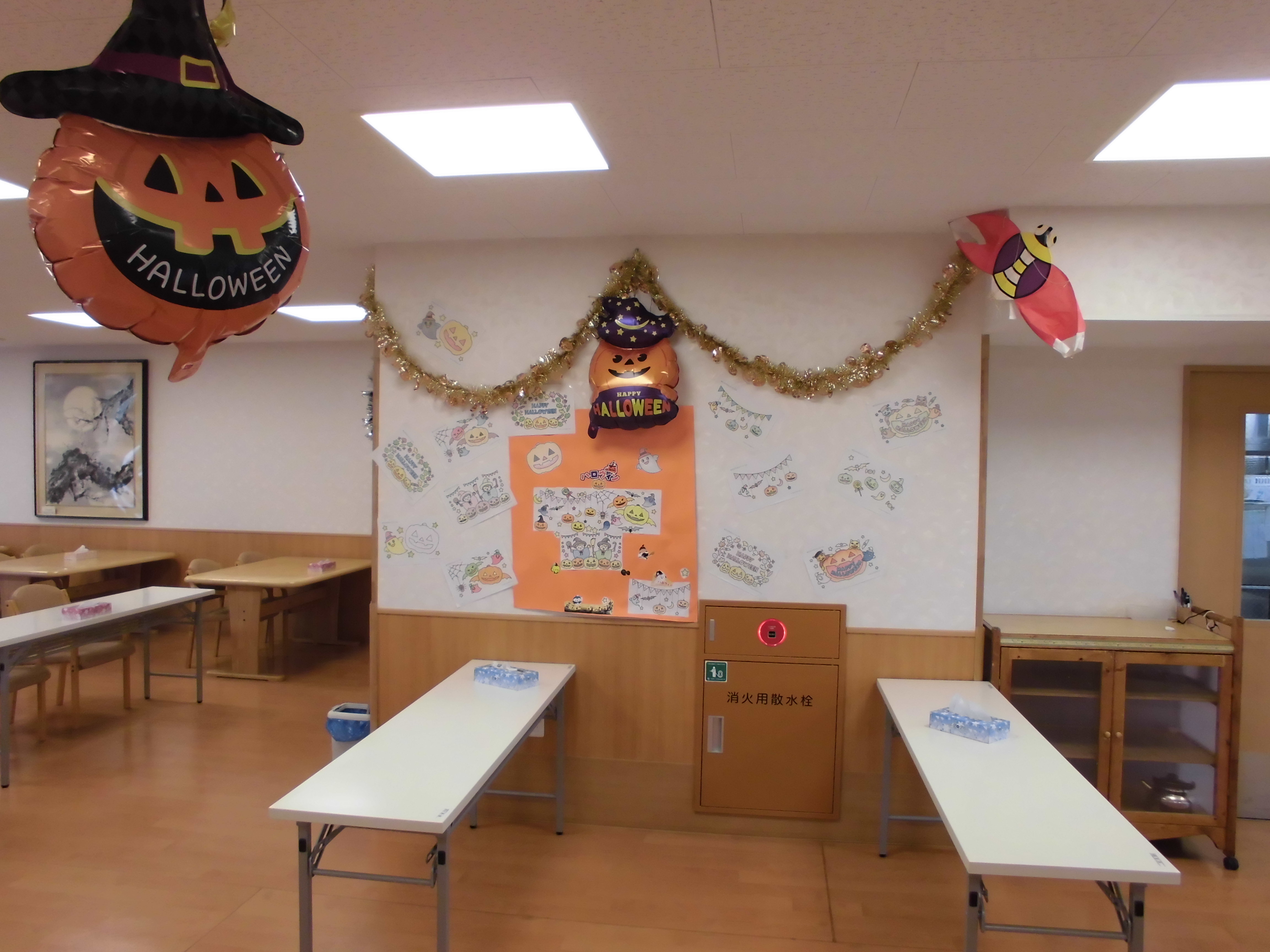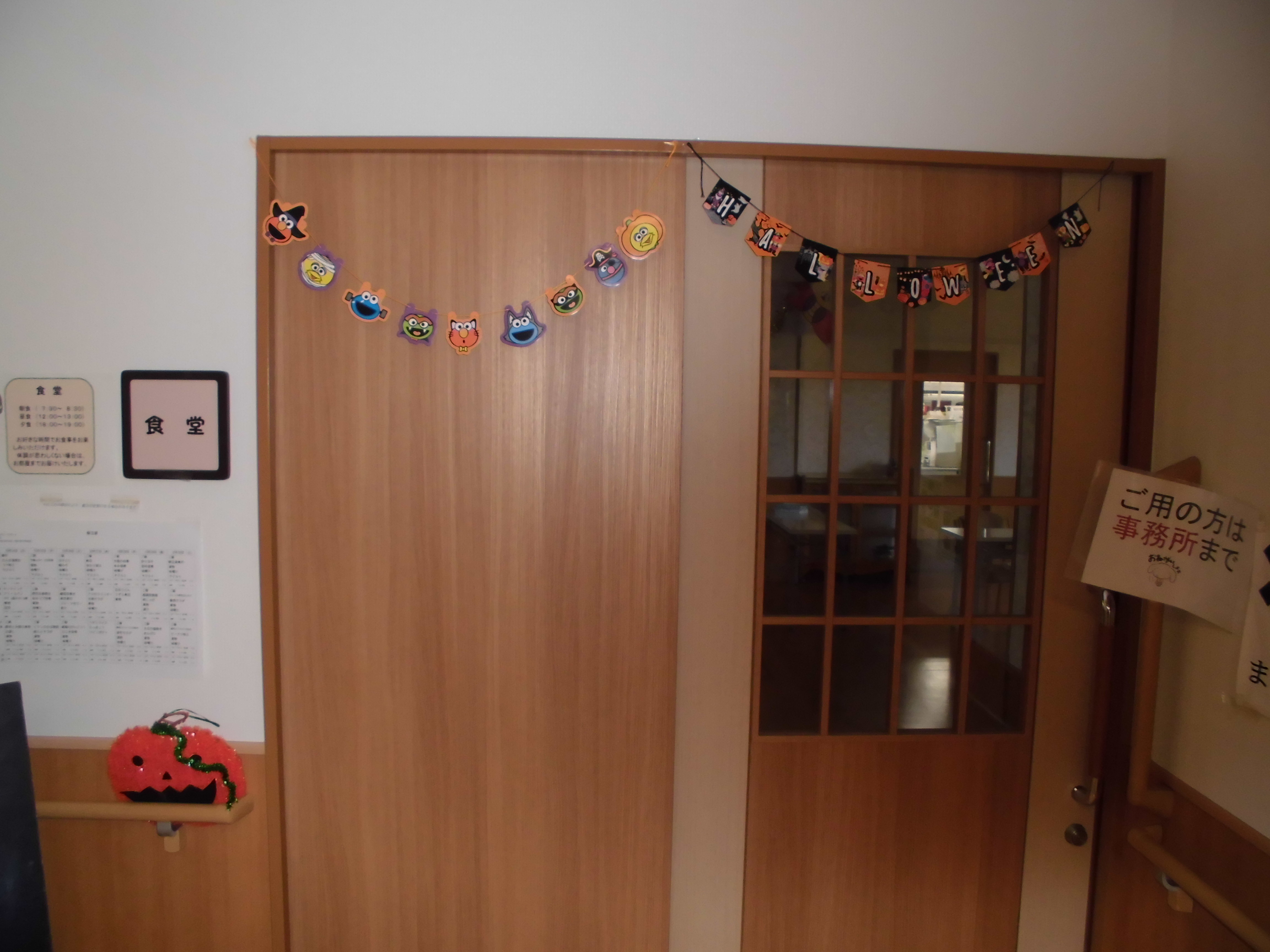 数日前に小町山グリーンホームでは、ハローウィンの飾りつけを行いました。