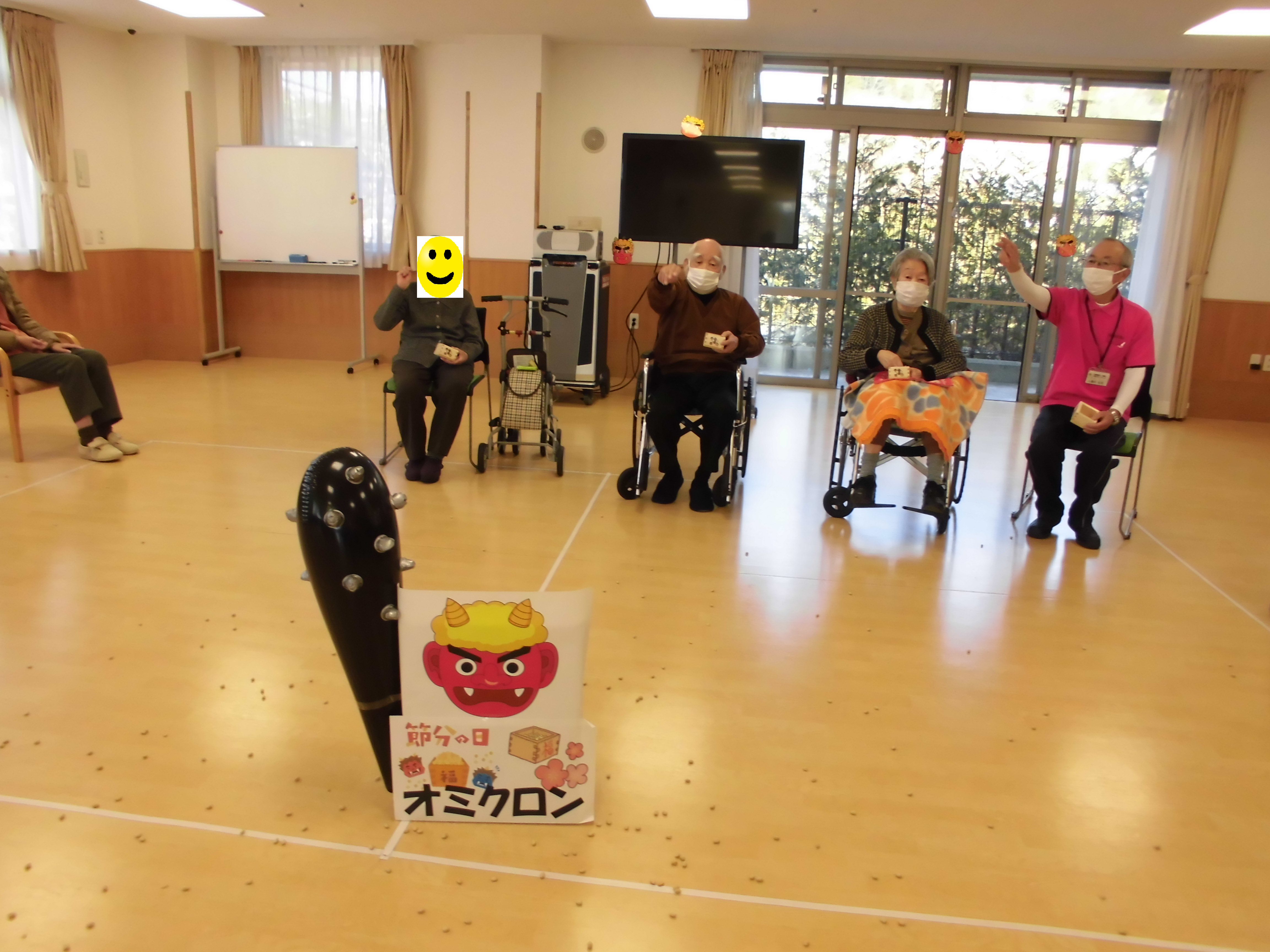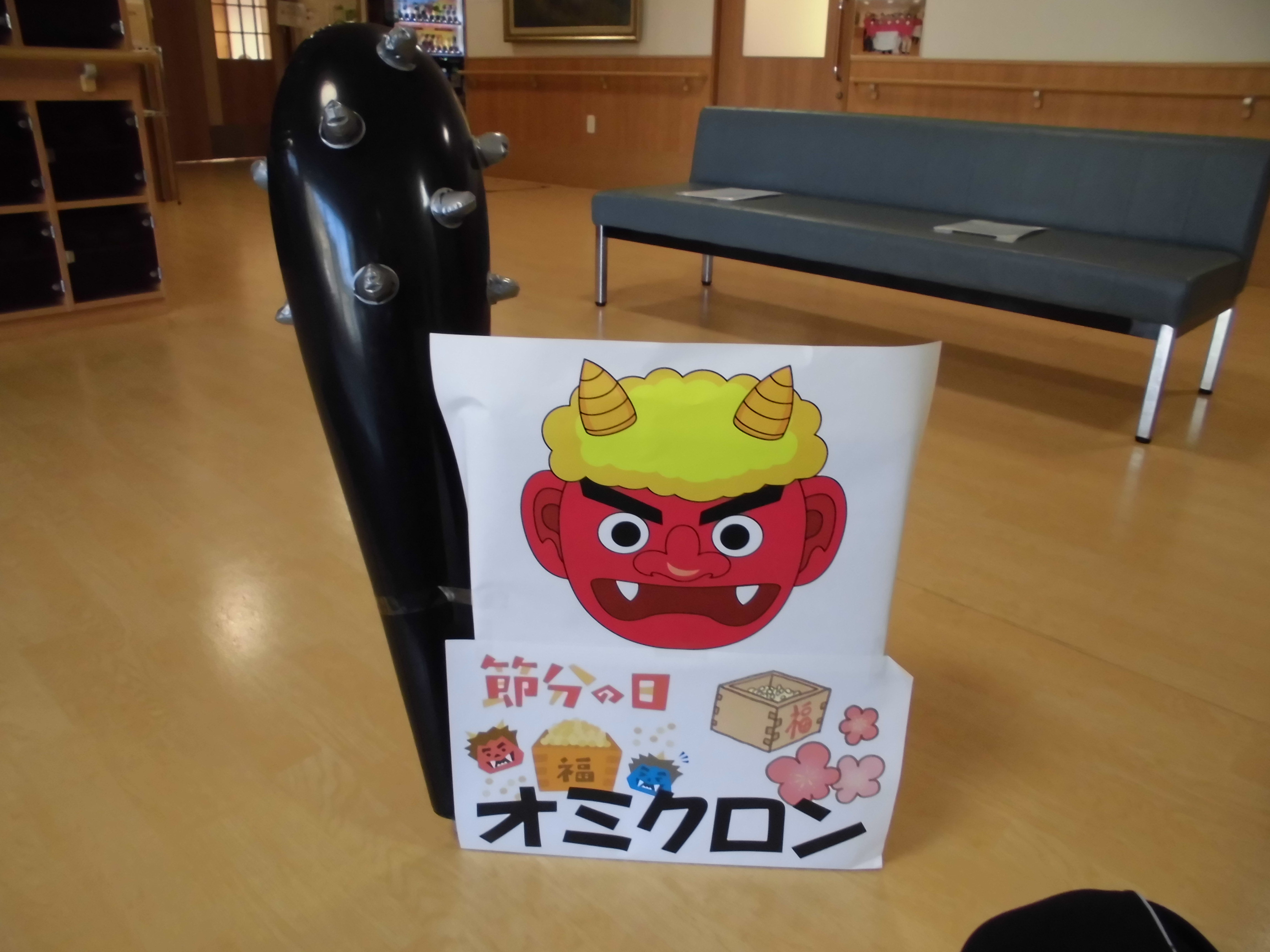 令和4年2月3日 節分・豆まきを行いました。 今年は、新型コロナウイルスのオミクロン株が退治できるように皆さんで 『鬼は外~、福は内~』と叫びながら豆を投げます。 鬼に豆をぶつけることにより、邪気を追い払い、一年の無病息災を願いました。