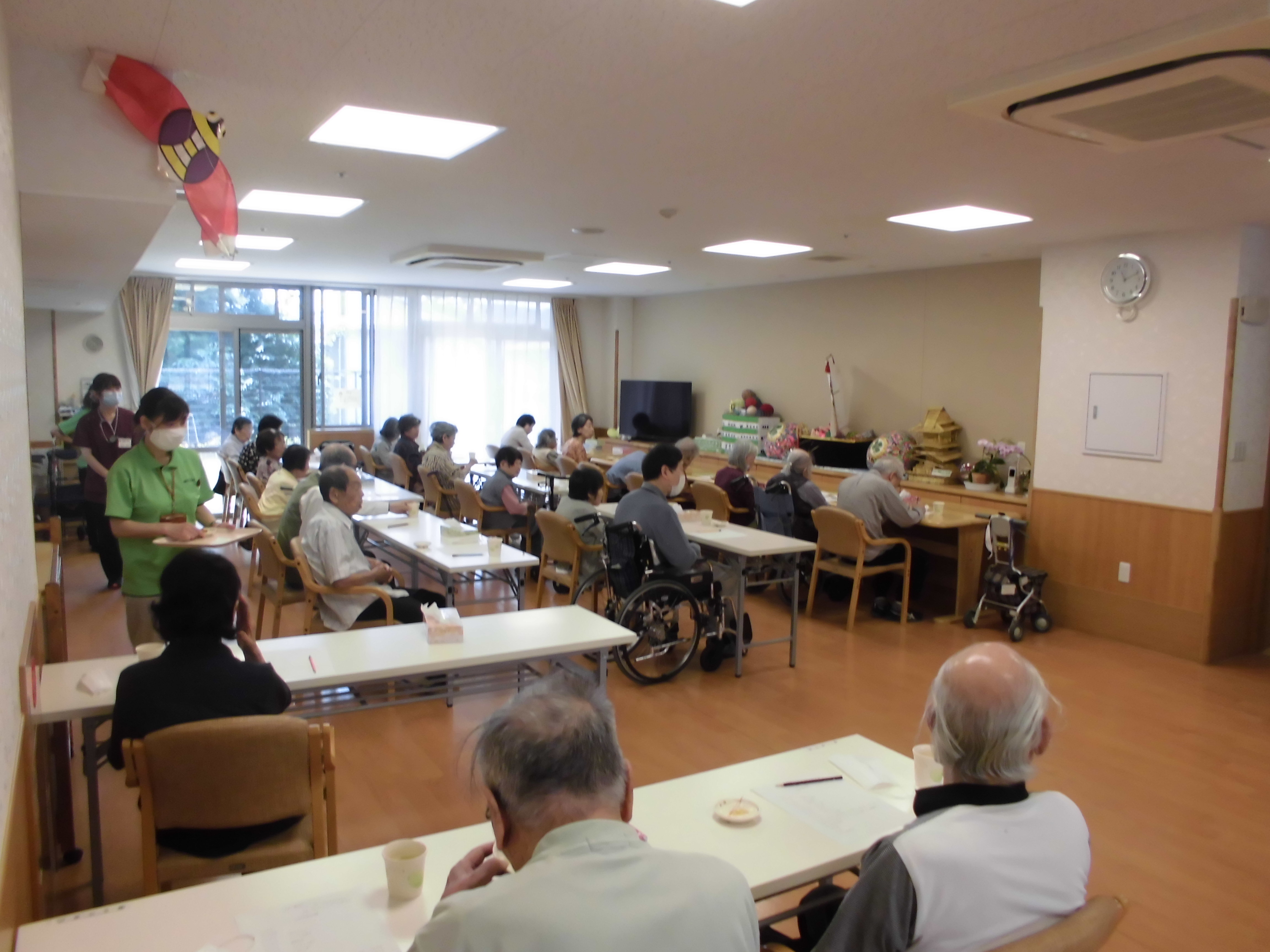 6月8日(火) 月1回のお茶会です。 今回は、5月に皆さんで収穫したジャガイモを厨房が調理しました。 ジャガイモの甘辛煮です。 皆さん、美味しく召し上がっていました。 6月の誕生者は、8名お誕生日おめでとうございます。
