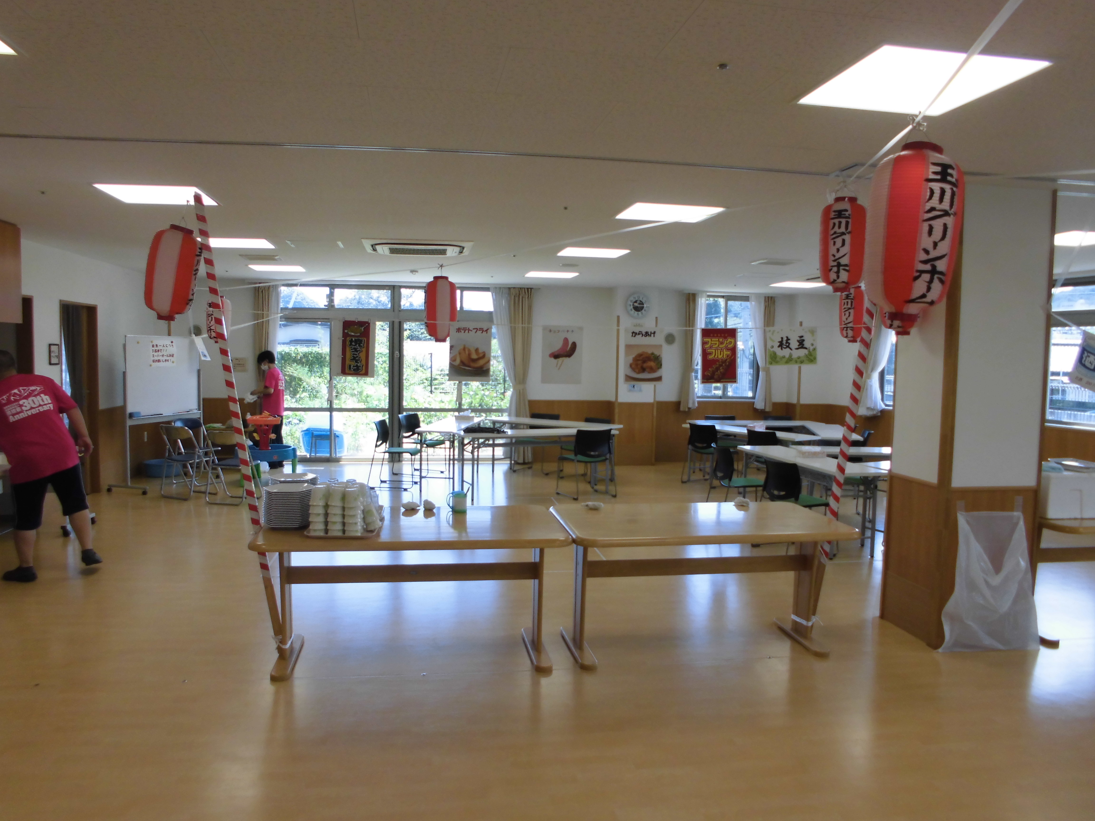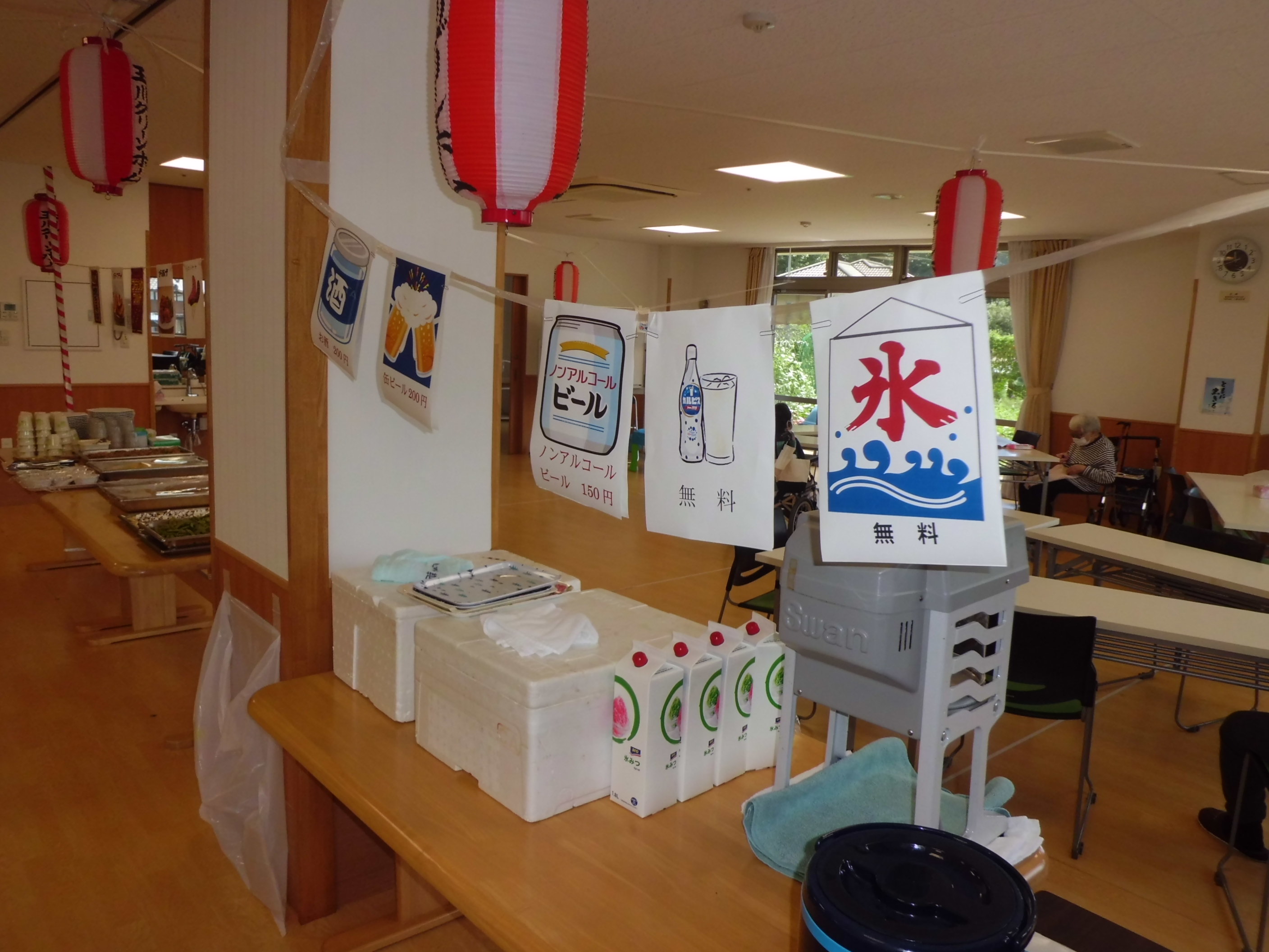 提灯をつけると夏祭りの雰囲気が出ますね。