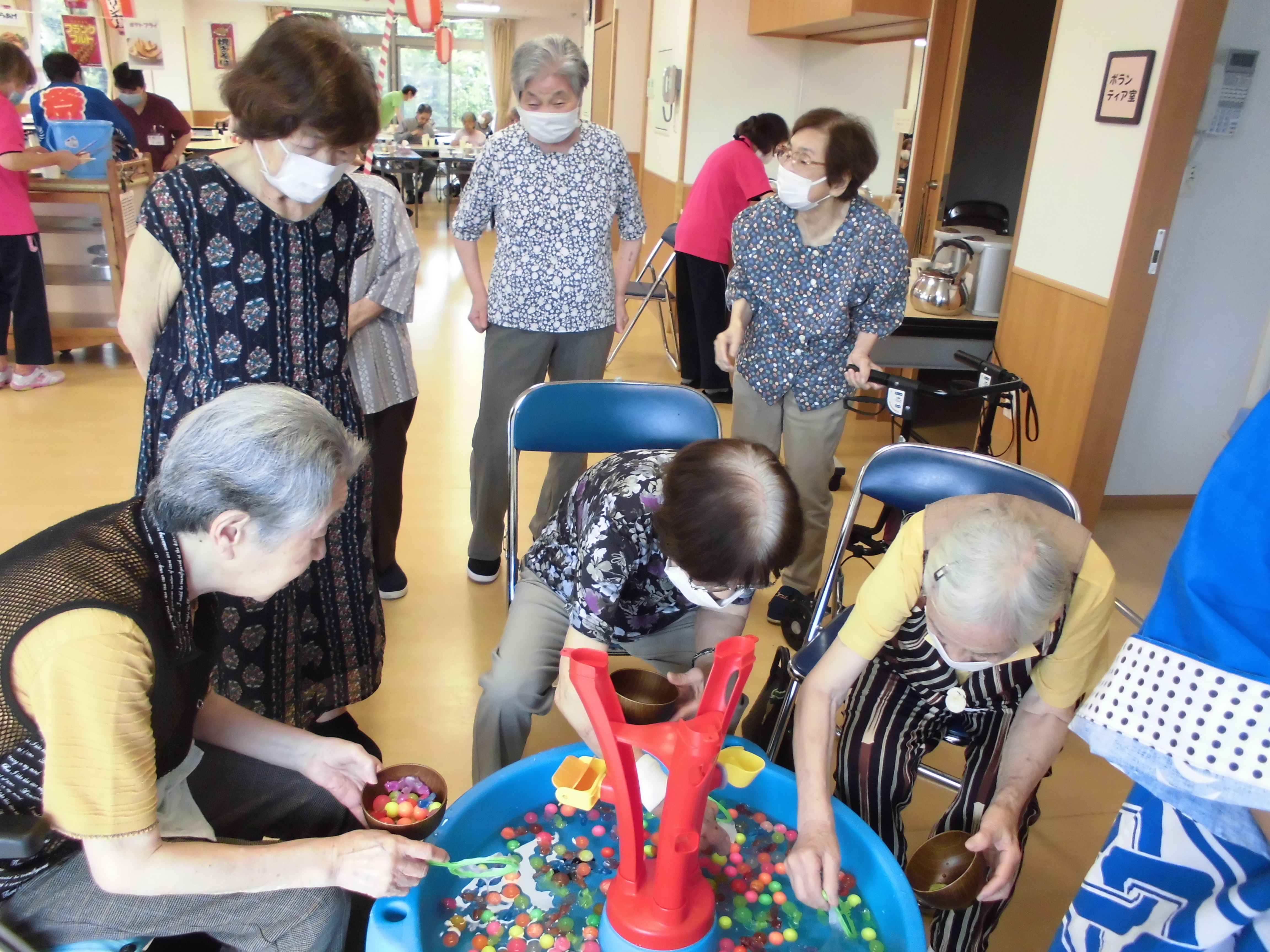 おもちゃの金魚すくいで皆さん真剣です。