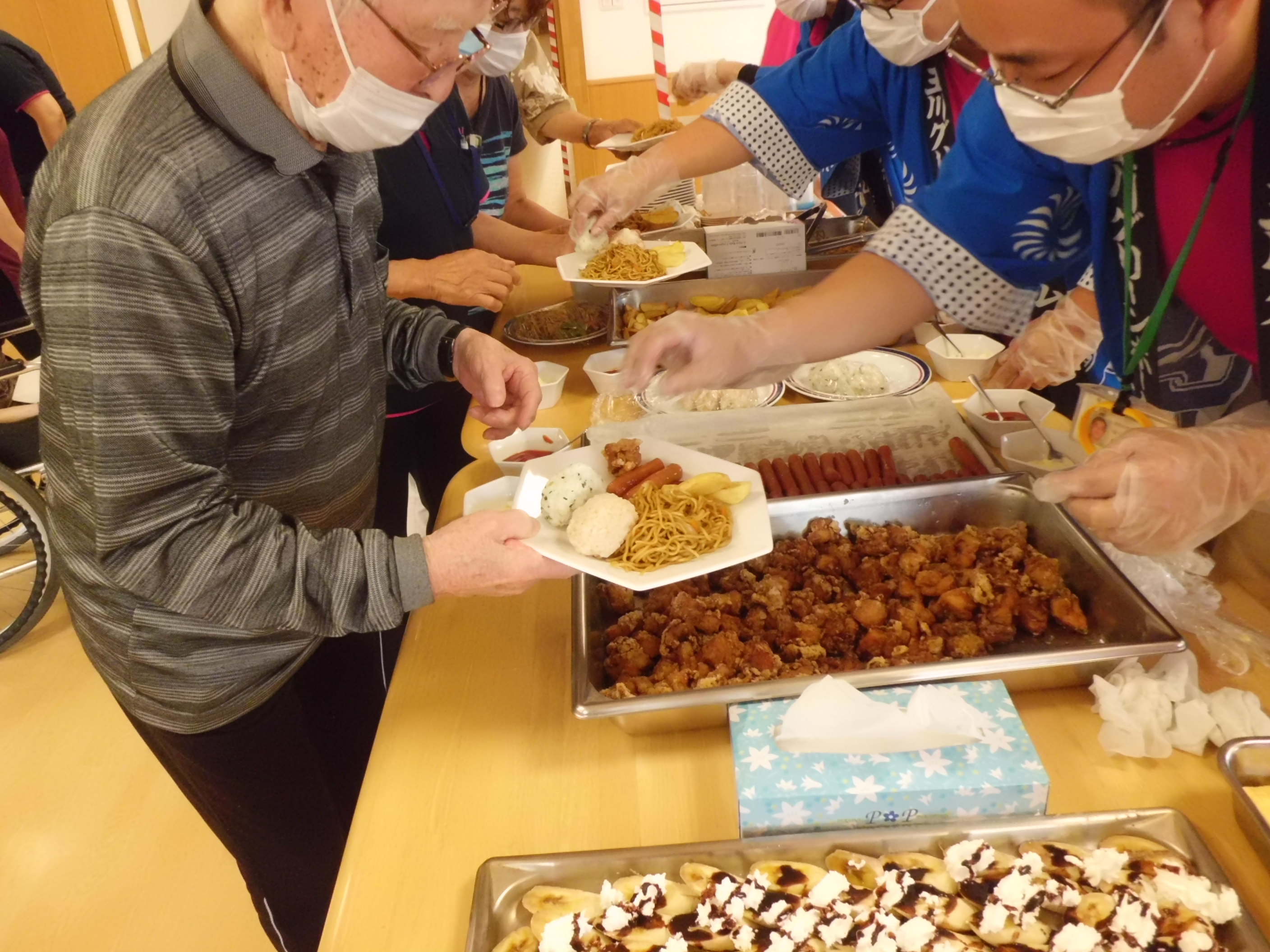 12時の昼食のスタートに間に合わせるように職員総出で準備を行いました。
