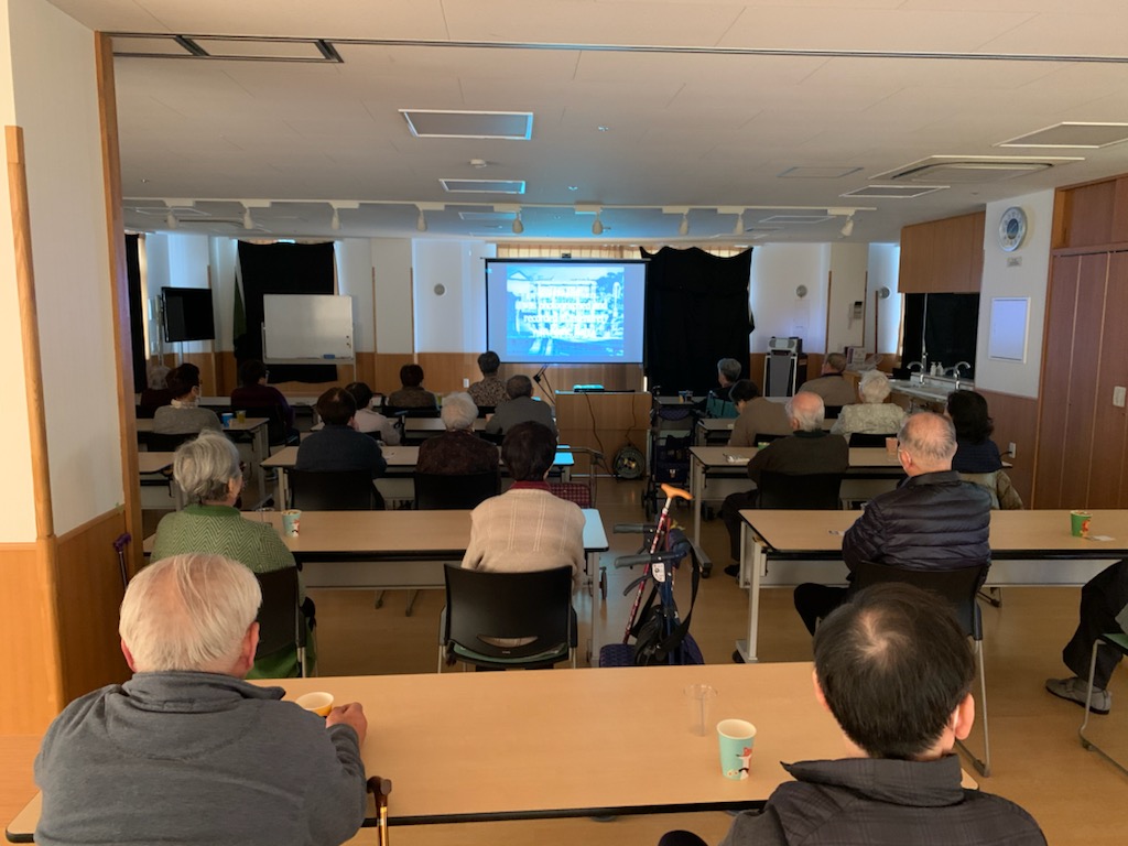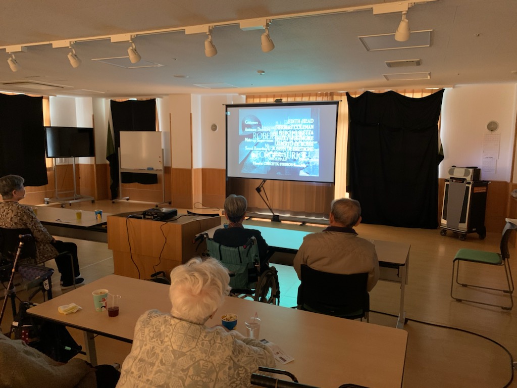 1月17日(日) 本日は映画観賞会です。 昔懐かしい映画・・・、皆さんはどんな映画をご覧になられたのでしょうか? 今回は1954年 昭和29年に日本で上映された「ローマの休日」をご覧頂きました。 とても有名な映画ですが、もう66年も経つんですね~。 映画館らしく、ポップコーンにジュースも召し上がって頂きました。 換気を行いながらなので、会場は少し寒かったようですが、久しぶりの映画にとても喜んで頂けました。