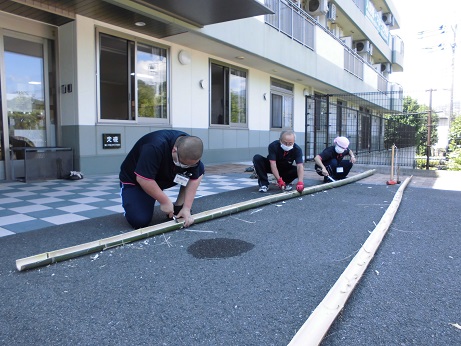 「節」を取る作業はナカナカ大変です!男性職員が中心となり、せっせと準備いたしました。