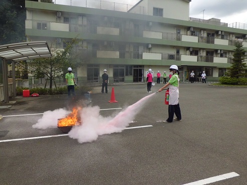 9月29日(火) 小町山グリーンホームでは防災訓練を行いました。 通報・放送訓練等を行ったのち、 屋外への避難訓練。 入居者の皆さんも、真剣な表情で訓練に参加してくださいました。 屋外に避難した後は、 職員による各種消火訓練を見学していただきました。 昨今はコロナウイルス感染拡大が心配されますが、 火事や震災はいつ発生するかは分かりません。 こんな時だからこそ、日頃からの防災の準備や意識を より一層高める必要があるのかもしれません。 そのことからも、とても有意義な訓練となりました。