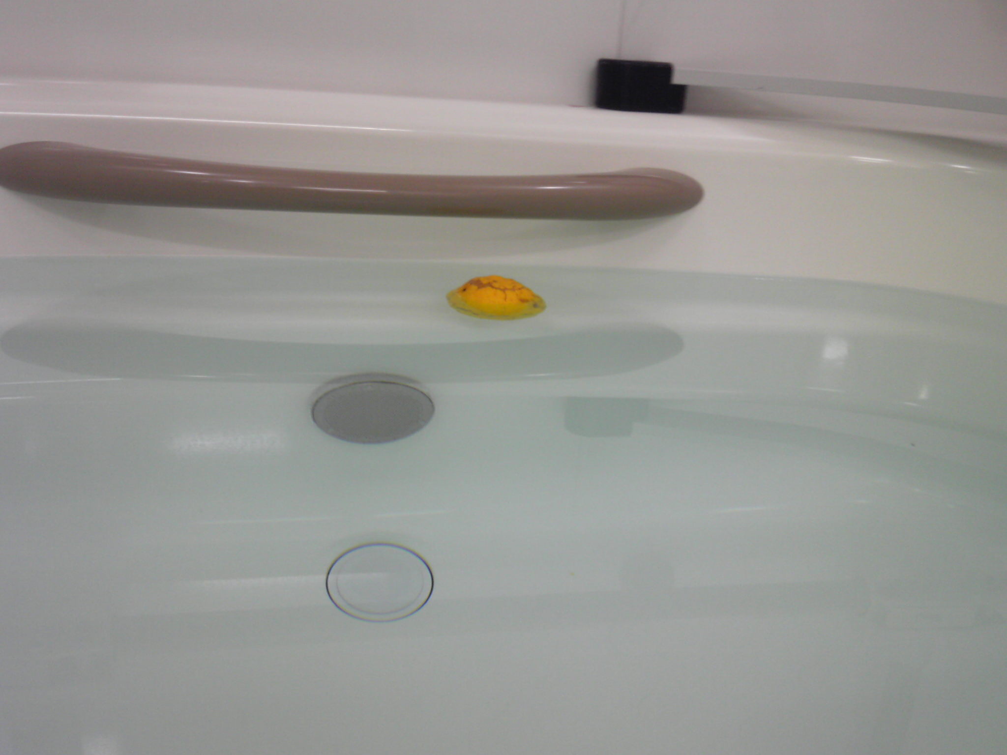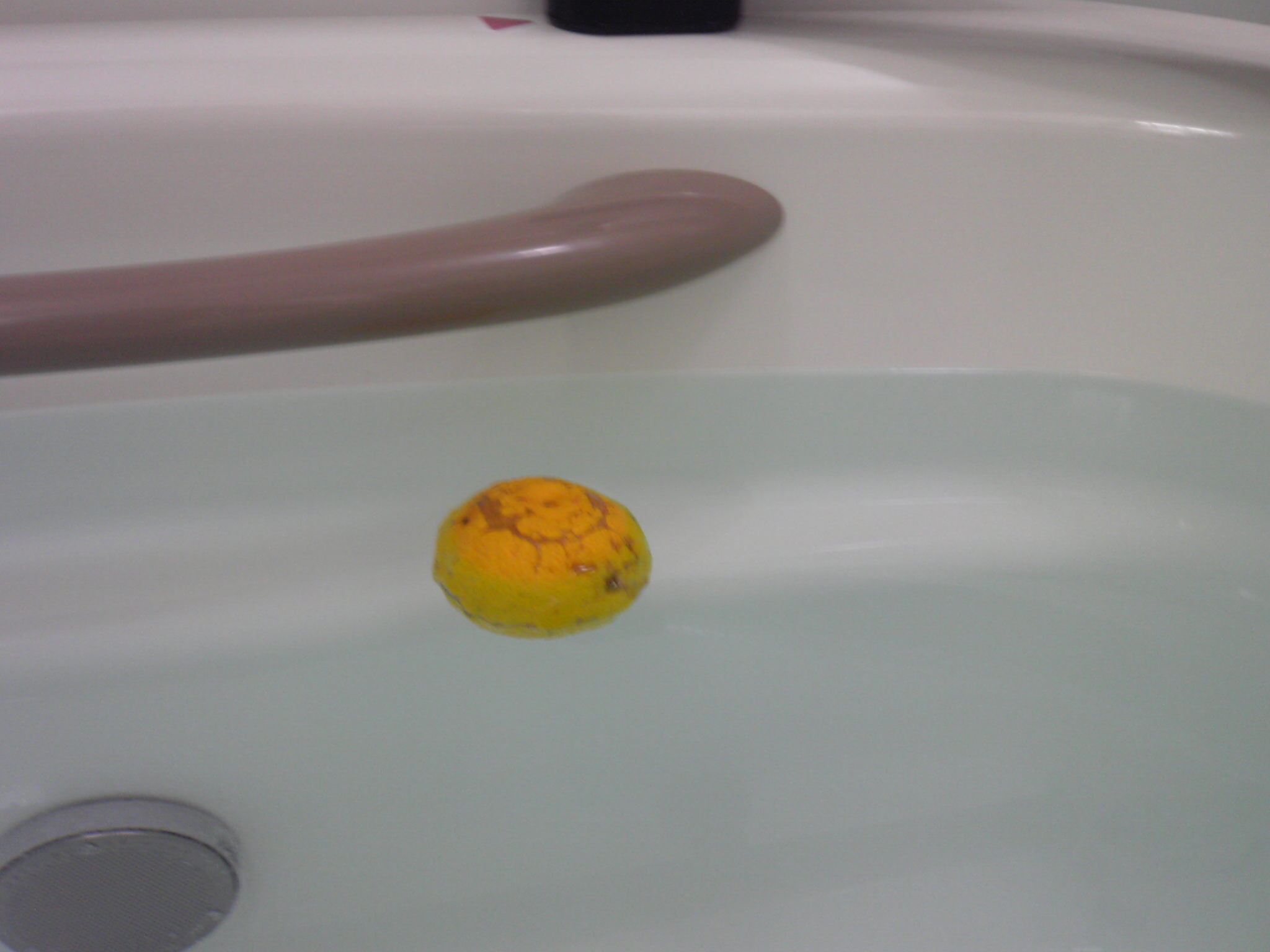 12月19日~12月22日 始まりました!ゆず湯! 冷蔵庫から出した瞬間、柑橘のいい匂いが部屋中に届きました。 お風呂でもっと香るように箸で“プスプス”たくさん穴を開けてお風呂に投入!! でも、ちょっとさみしいこの写真・・・。 ご利用者様は写真に撮れないので・・・ 気持ちよさそうにお風呂に入られているお姿をご想像くださいませ。 次回は入れる数を増してみましょうか。