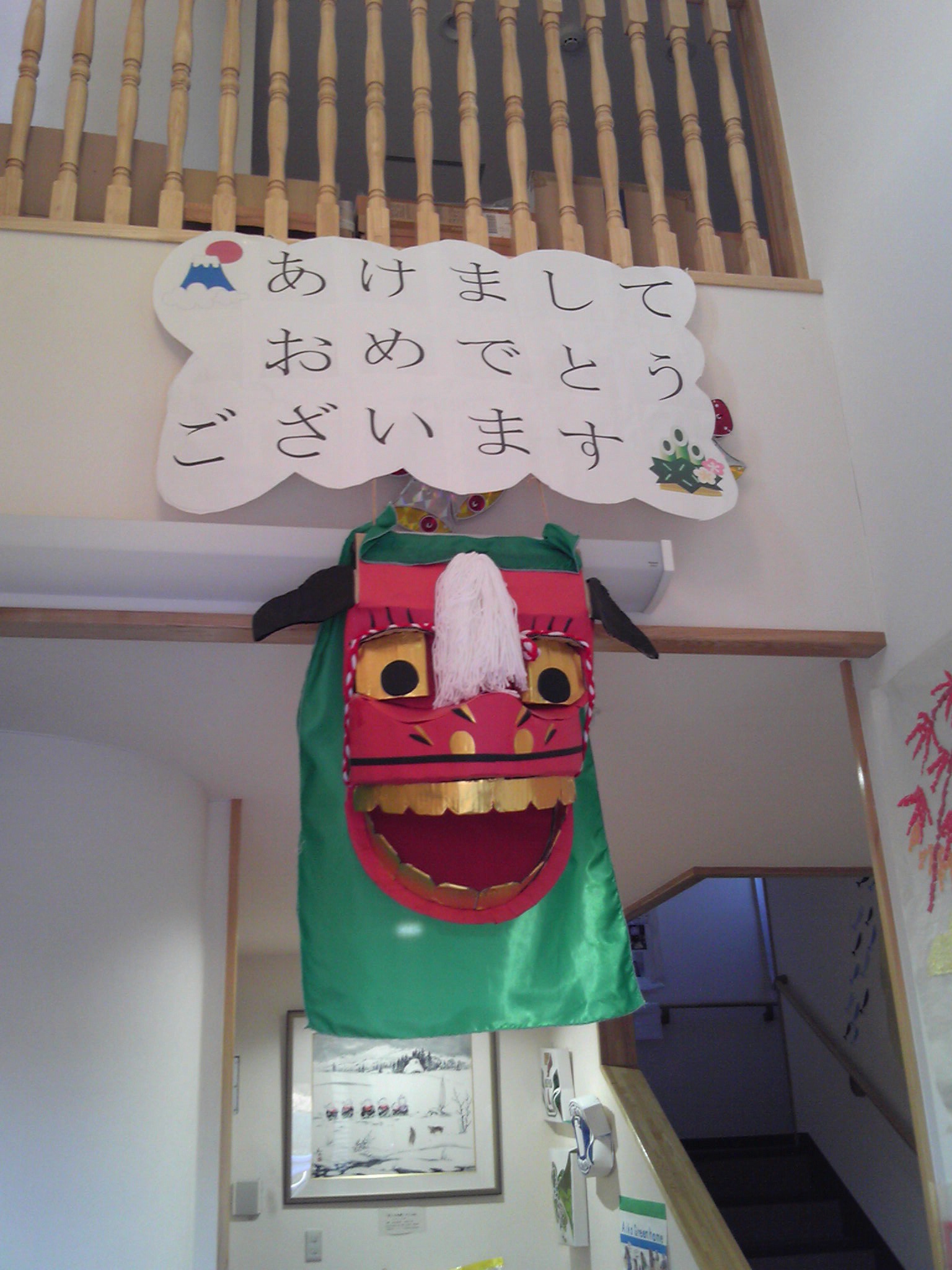 ~あけましておめでとうございます~ あっという間に2017年です。 愛甲の内玄関では獅子舞の守り神が今年も皆さんをお守りいたします。 今年も何卒よろしくお願い申し上げます。 愛甲から見える初日の出 みなさんが無病息災で元気で過ごせる様に頭を噛んでもらいましょう♪