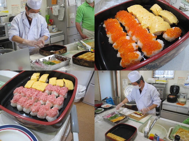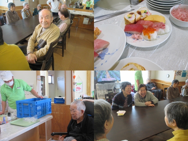 3月19日(木)、本日はお寿司イベントを開催。 玉川グリーンホーム栄養課の職員さんが来所され、 目の前でお寿司を握ってくださいました。 握る手捌きに、 入居者のみなさんから感嘆の声があがりました。 出来立てのお寿司は格別です。 みなさん笑顔です。 沢山召し上がられていました。 ありがとうございました。 そしてお寿司イベントの後は、 第2回愛甲グリーンホーム防災訓練です。 防災委員指示のもと、 みなさんと安全に避難ができました。