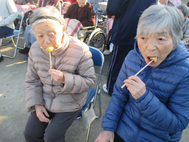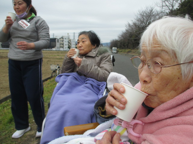 どんど焼きとは小正月の行事で、正月の松飾りや注連縄、書初めなどを家々から 持ち寄り、一か所に積み上げて燃やすという、日本全国に伝わるお正月の 火祭り行事です。 愛甲グリーンホームでは、地域の自治会のどんど焼きと、玉川グリーンホームで 行われたどんど焼きに参加してきました。 どんど焼きの火にあたったり、焼いた団子を食べれば、その1年間健康でいられると 言われております。 今年もみなさんがお元気に過ごせますように。
