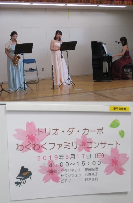 女性3人グループの方々がピアノ🎹、クラリネット、サックス🎷の演奏を