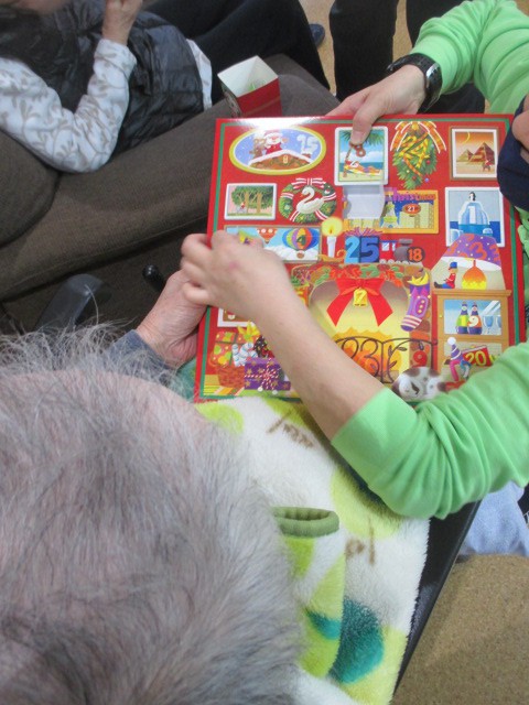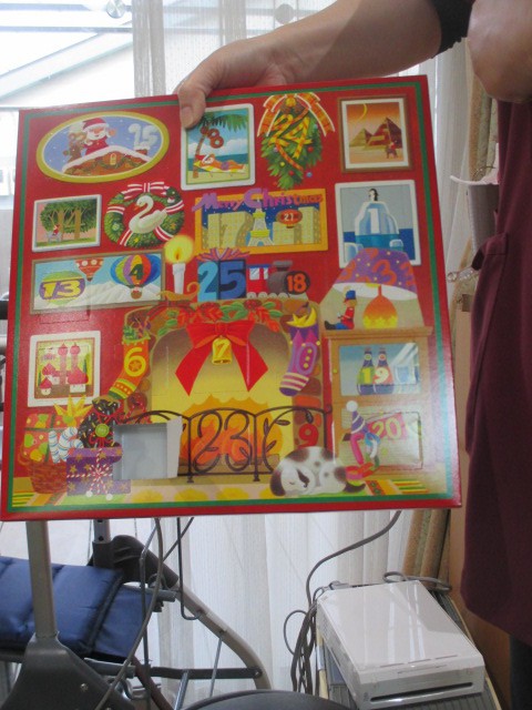 12月24日、クリスマス会を開催しました。 職員の手作りケーキも用意し、 楽しいクリスマス会の開催です。 まずはみなさんと体操や歌を歌い、そのあとWiiボーリングで遊びました。 笑顔満載です。 そのあと、アドベントカレンダーをくじ引きとし、キャンディーやチョコレートをゲット♪ これも毎年盛り上がるんです♪ そして最後に美味しいケーキを食べました。 今年も楽しいクリスマス会でした♪