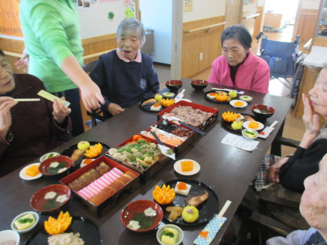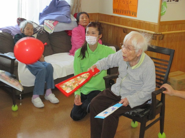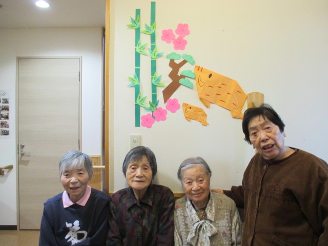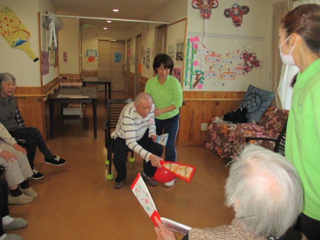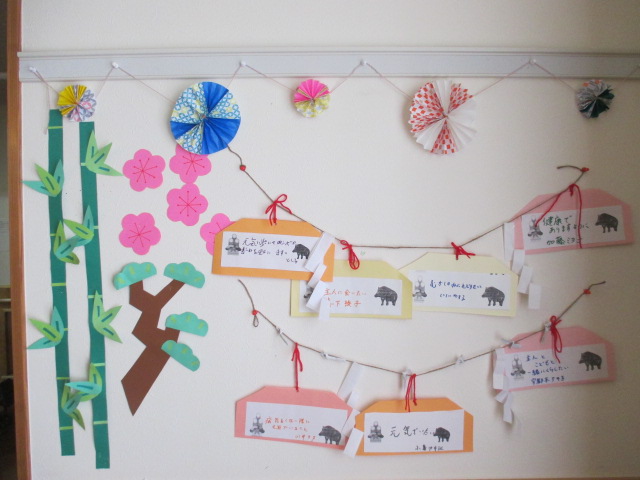 旧年中は大変お世話になりました。 新年を迎え、入居者のみなさんとお正月を迎えることができました。 お祝い膳は、お重で用意をさせていただき、 絵馬に今年の抱負を書いたり、おみくじを引いて楽しみました。 そしてお正月遊びでは、みなさんと羽子板をしました。 職員手作りの羽子板です。 とっても盛り上がりました。 本年もよろしくお願いいたします。