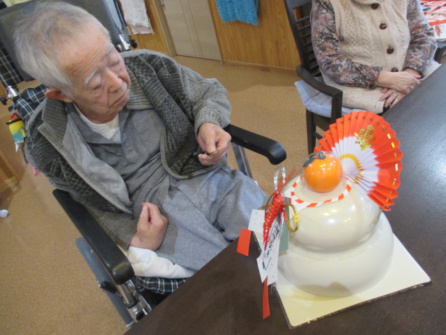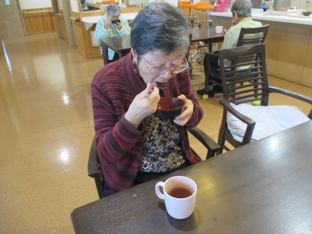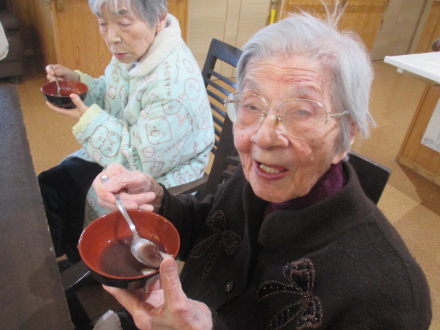 鏡開きを行い、みなさんとお汁粉を食べました。