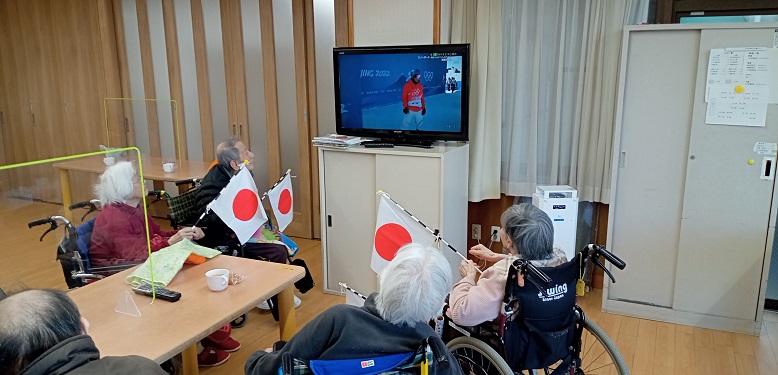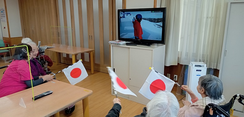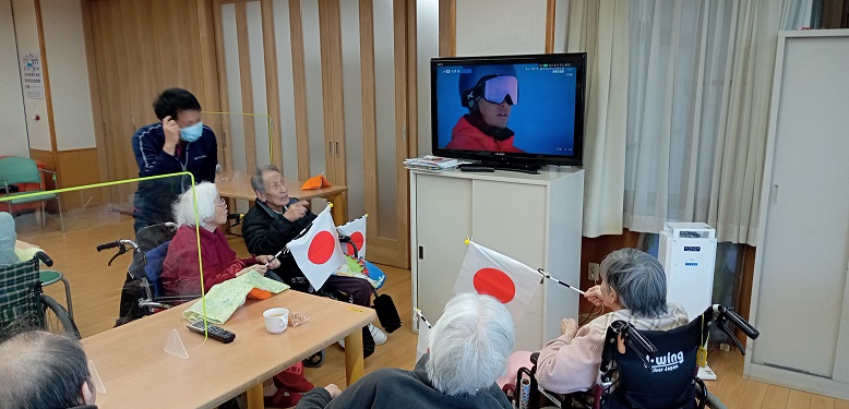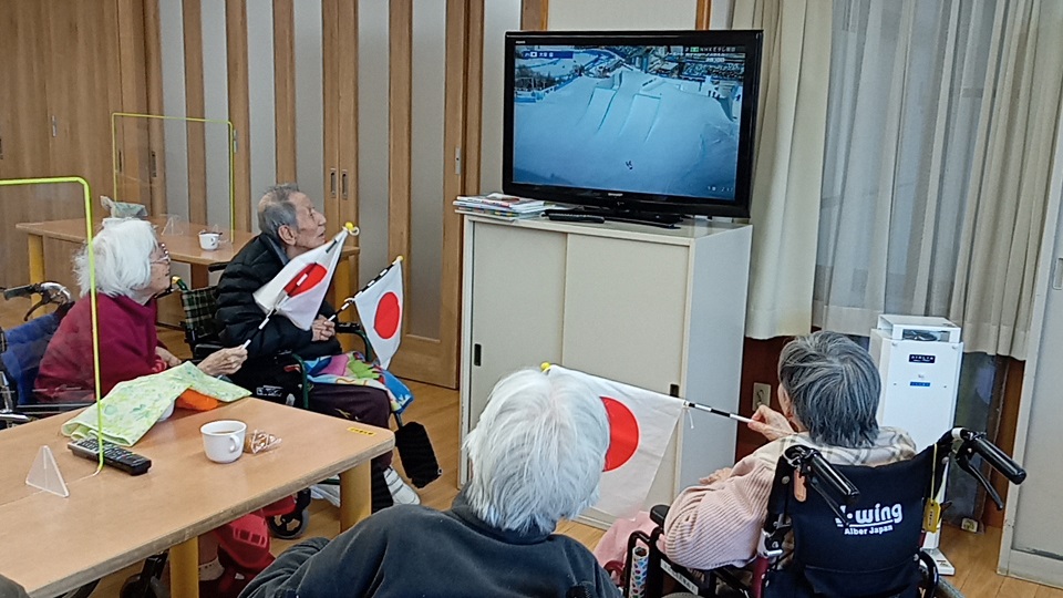玉川グリーンホームです。 開催されている北京オリンピック。昨日はスノーボードスロープスタイルに地元厚木出身の大塚健選手が出場されたので皆さんで応援です!! 「がんばれっ!」そんな掛け声を出すと、自分達も奮い立たせてくれる気がして、世界を相手に活躍する若い方達から、私達も元気を頂いています。 14日からのビックエアでも、熱い声援を送らせて頂きます!!