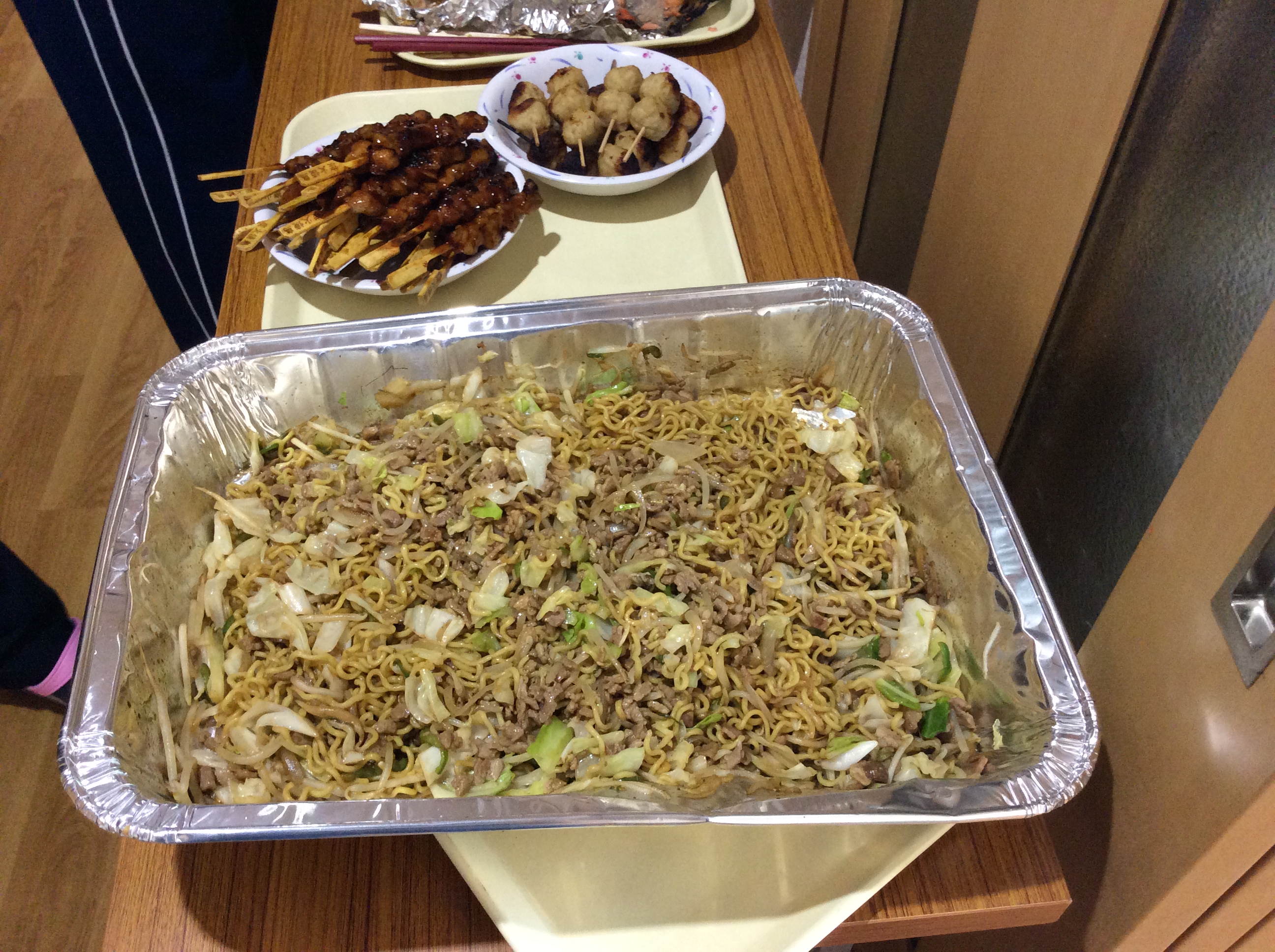 メニューは、鮭のちゃんちゃん焼き、焼きそば、焼き鳥、つくね、焼きおにぎり、