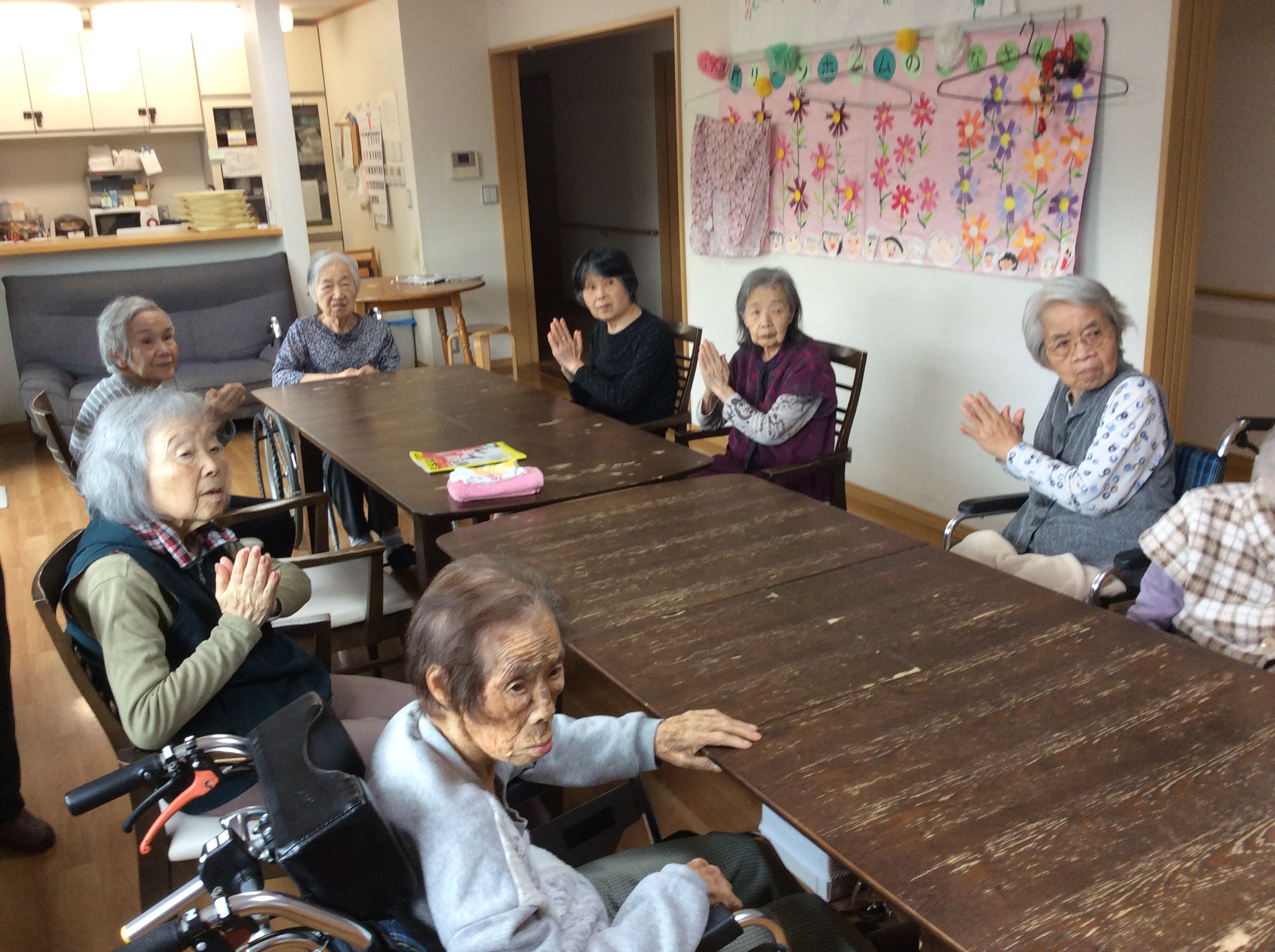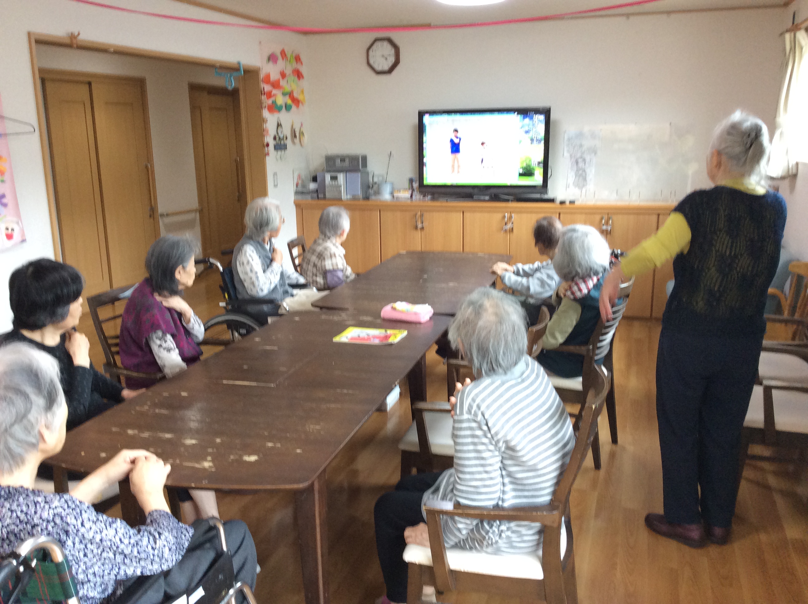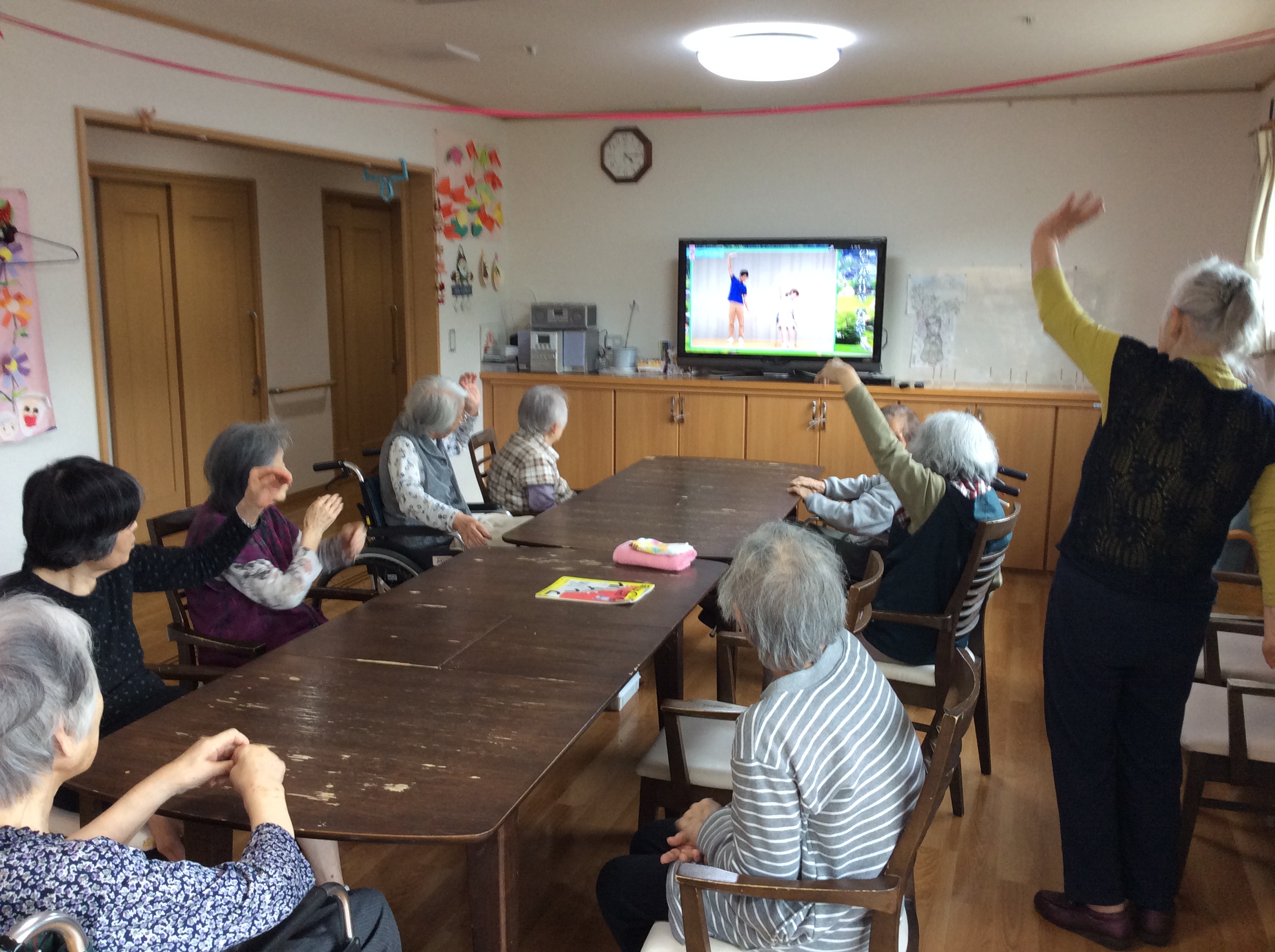 今日もご利用者様の皆様と音楽に合わせて体操を行って頂きました。 その様子をご紹介したいと思います。 皆一緒になってお元気そうで何よりです。 今後とも、是非よろしくお願い致します。