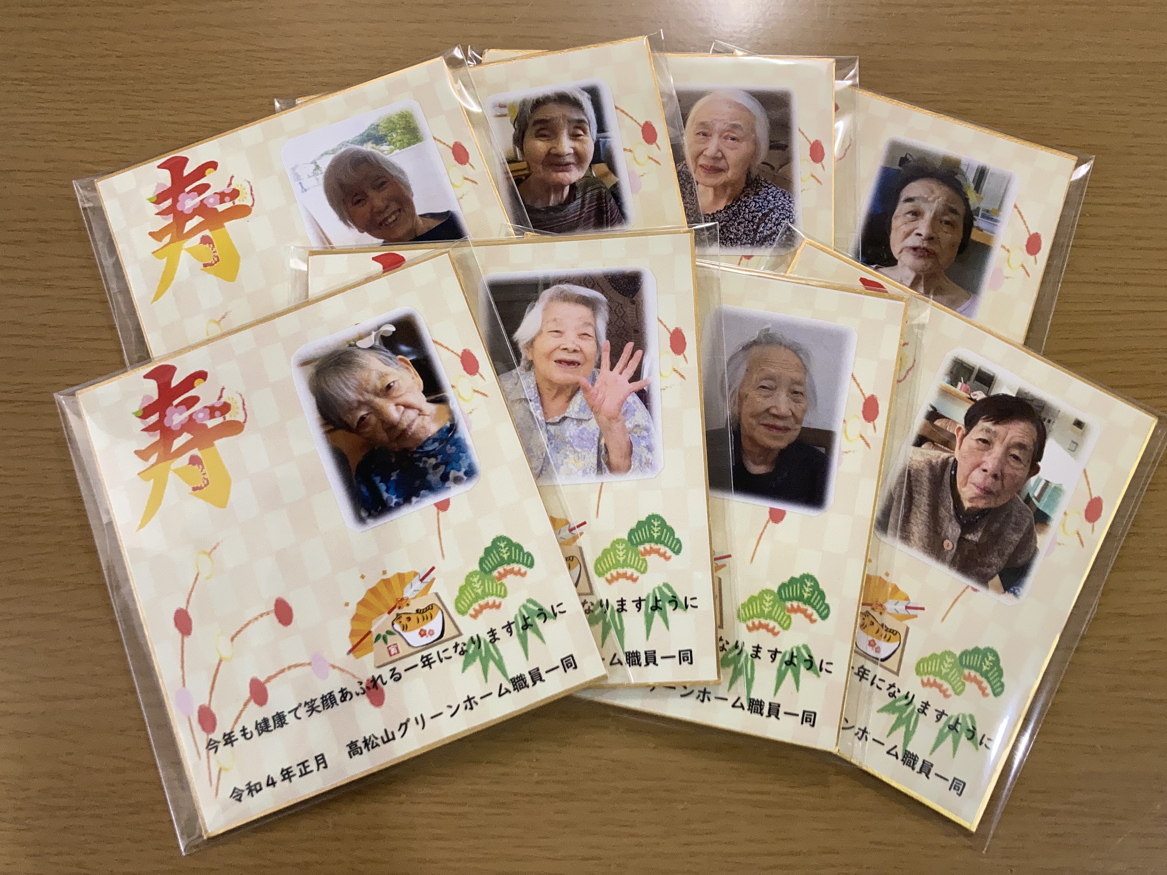 明けましておめでとうございます。 投稿が遅くなってしまいましたが、高松山では穏やかな新年を迎えました。 1月1日(土) 昼食は「祝い膳」をご用意させて頂き、皆様、ほとんど残すことなく 美味しく召し上がって頂きました。 午後からは、書き初めを行い皆様、とても上手に書かれていました。 そしてミニ色紙を皆様にプレゼントさせて頂きました。 1月2日(日) 小野神社へ初詣に出掛け、皆様の無病息災を願って参りました。 今年もよろしくお願い致します。