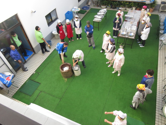 餅つきでは、大きな掛け声もあがり、賑やかな餅つきとなりました。