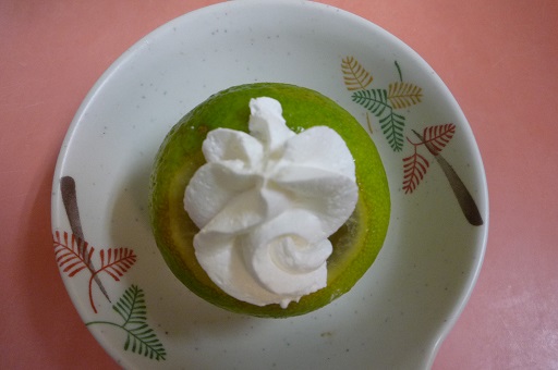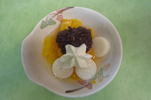 久しぶりの更新になってしまいました。 最近の喫茶で出たデザートを紹介したいと思います。 スイートポテトです。お芋の味がしておいしかったです。 こちらは頂いたかぼすを使ってゼリーを作りました。 かぼすの皮を容器にしてみました。 ピーチゼリーに黄桃をと生クリームをのせた桃づくしになりました。 こちらはあんみつ風です。 みかんシフォンケーキです。やわらかく仕上がりました。 どちらも皆さんに好評でした! 次回も楽しみですね!