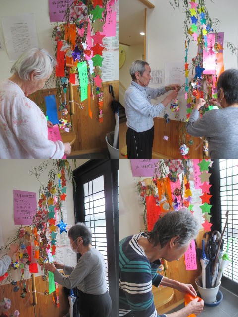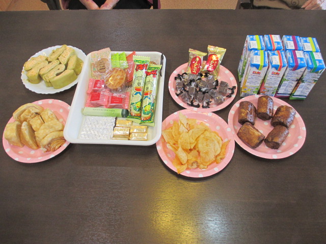 七夕の笹が届きました。 みなさんと飾りつけをして、願い事を書きました。 今年もユニークな願い事がありました。 笹飾りを飾ったあとは、お楽しみの 七夕おやつバイキングを行いました。 よりどりみどりで、選ぶのもなんだか迷ってしまいます。 とても楽しい時間を過ごすことができました。