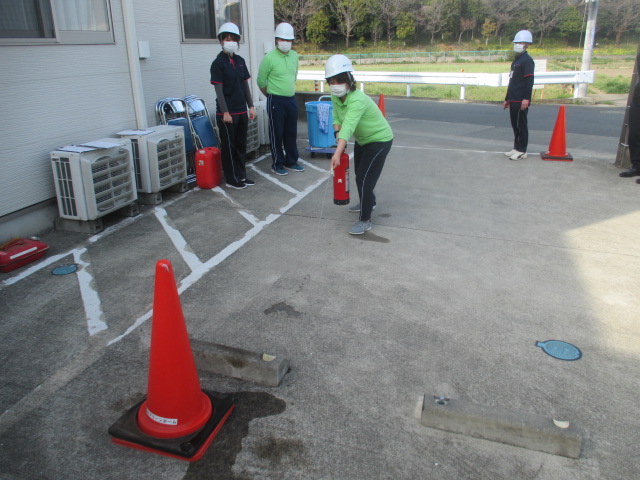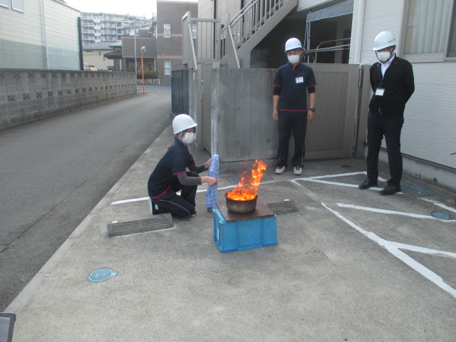 その後は、消火訓練も行い、厚手タオルでの消火、