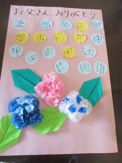 6月19日第3日曜日は父の日です。 愛甲グリーンホームでは、父を語る会を開催しました。 みなさんのお父さんの話を聞かせていただき、カードに書いてもらいました。 お父さんに感謝を伝える方や、お父さんの職業、 幼少の頃の思い出を書いたりと様々です。 カードを貼り付けると、素敵な壁画ができました。 玄関に飾りたいと思います。 お父さん、いつもありがとう!