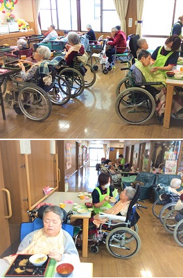 秋の味覚といえば何を思い出すでしょうか? こちらは秋の味覚がたくさん詰まったお弁当です。 皆様おいしそうに召し上がっていらっしゃいました。 最近急に冷え込んできましたので お体に気をつけてお過ごしください。