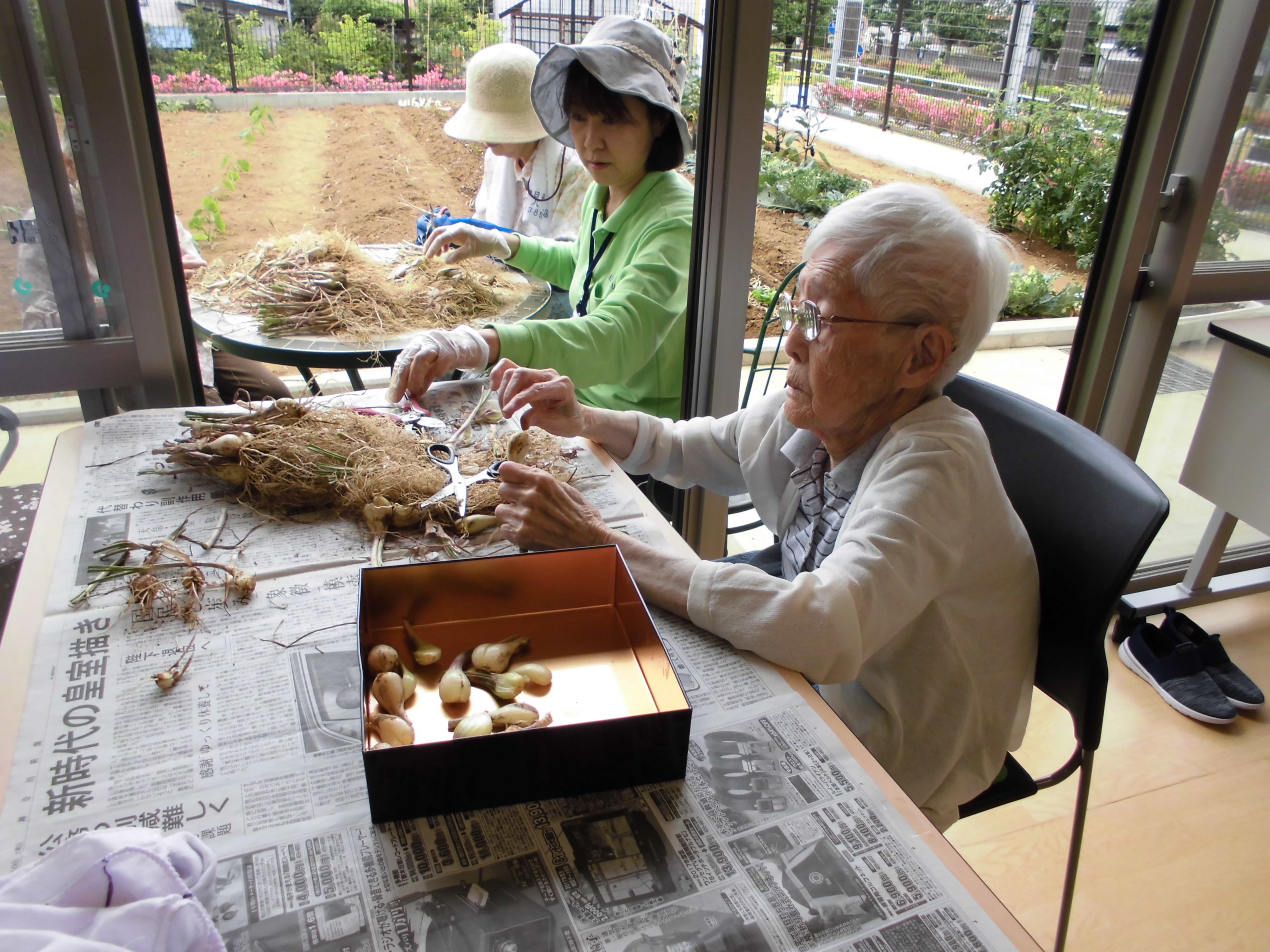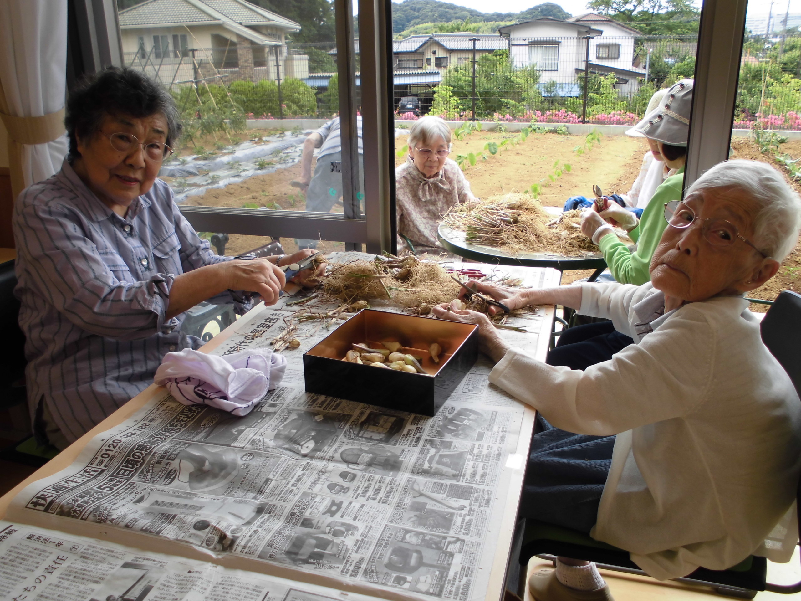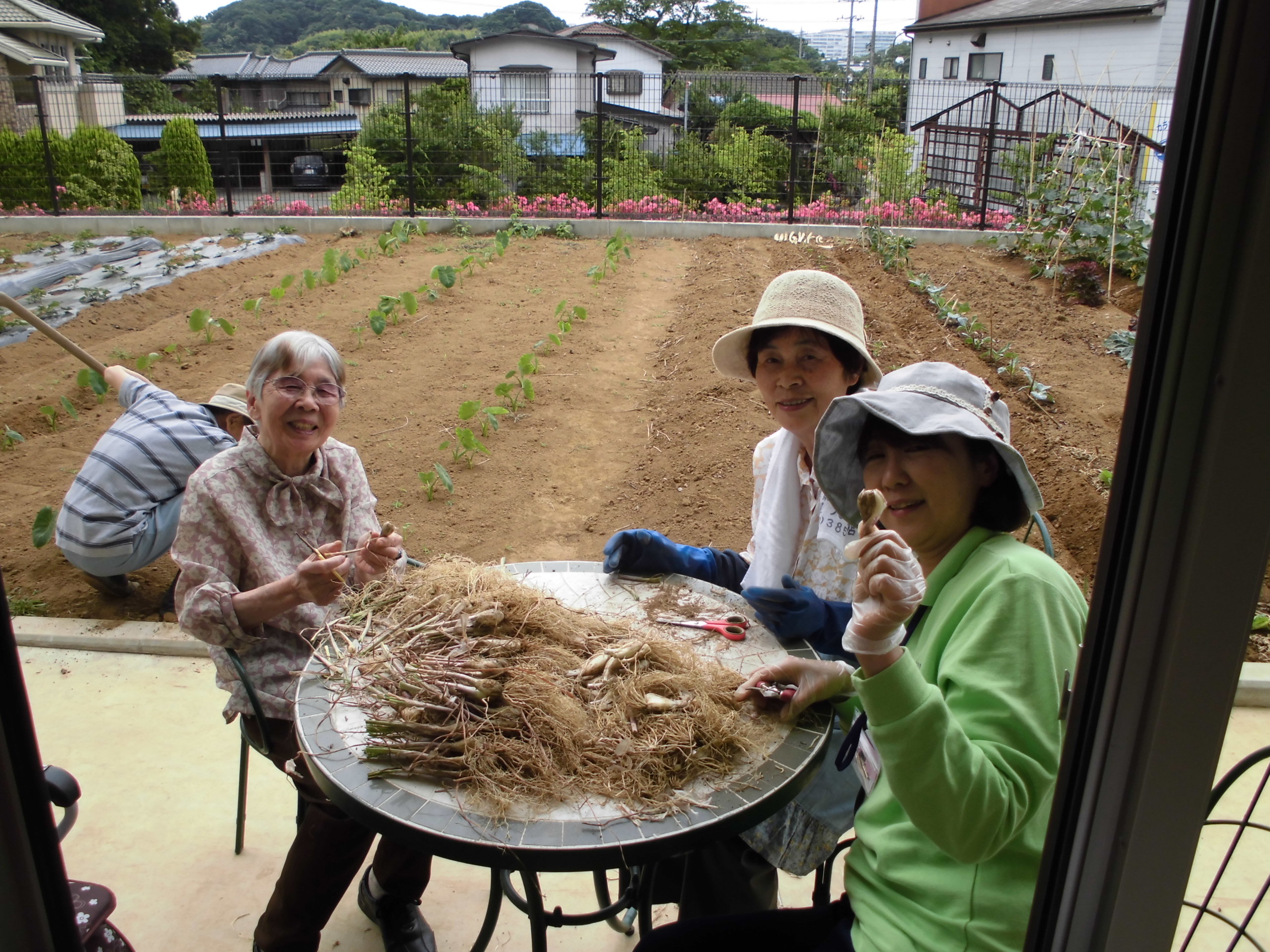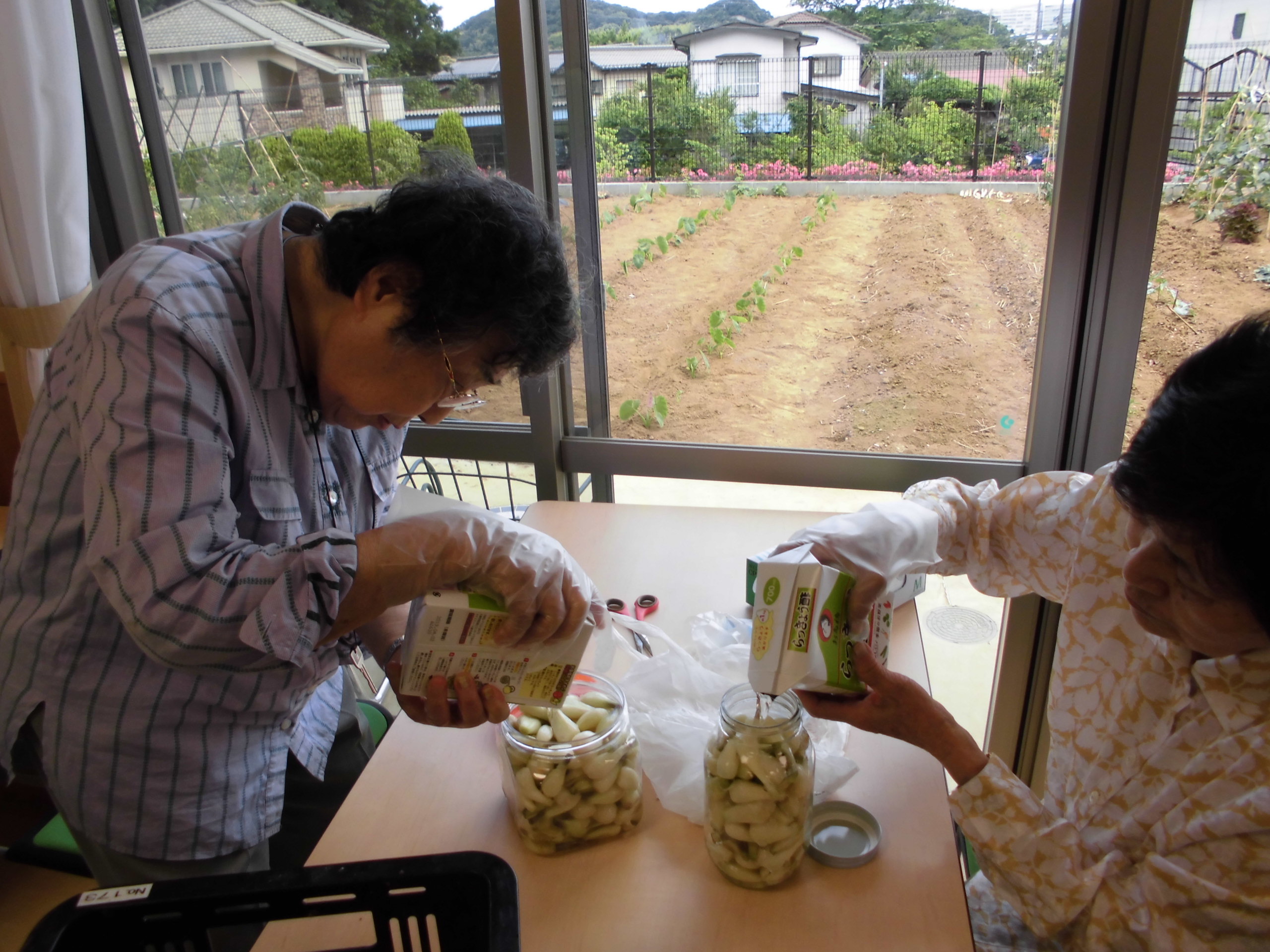 平成29年6月12日 小町山グリーンホーム らっ きょう漬け 小町山の畑にらっきょうが沢山。 おしゃべりしながら、作業開始。 あたまと根っこを切ります。 初めてだけど、楽しいわよ~。 薄皮をむいてきれいに洗いましたら… 瓶にいれて、 らっきょう酢を入れて。 完成しました。 2,3週間後の味見が楽しみです。