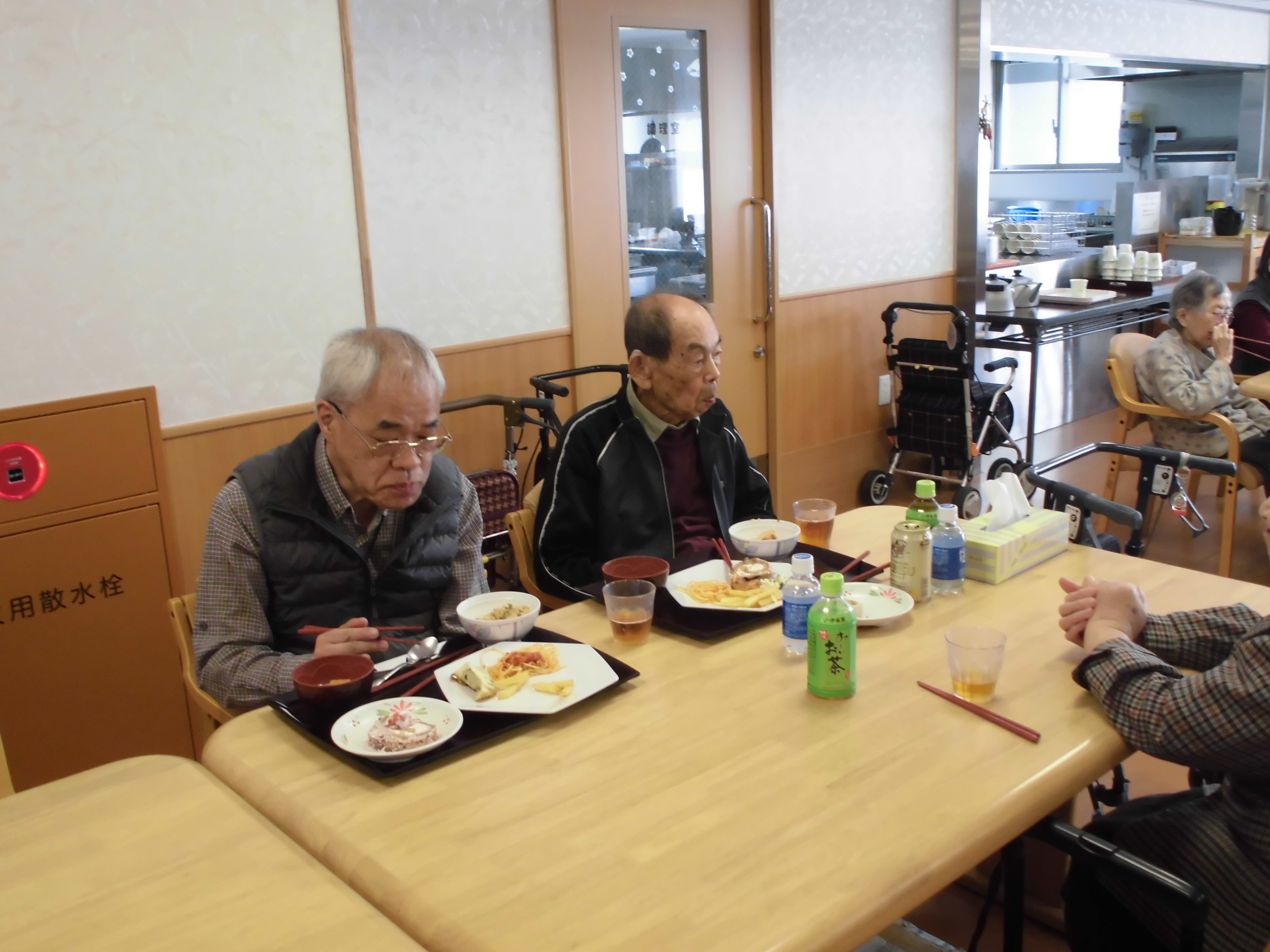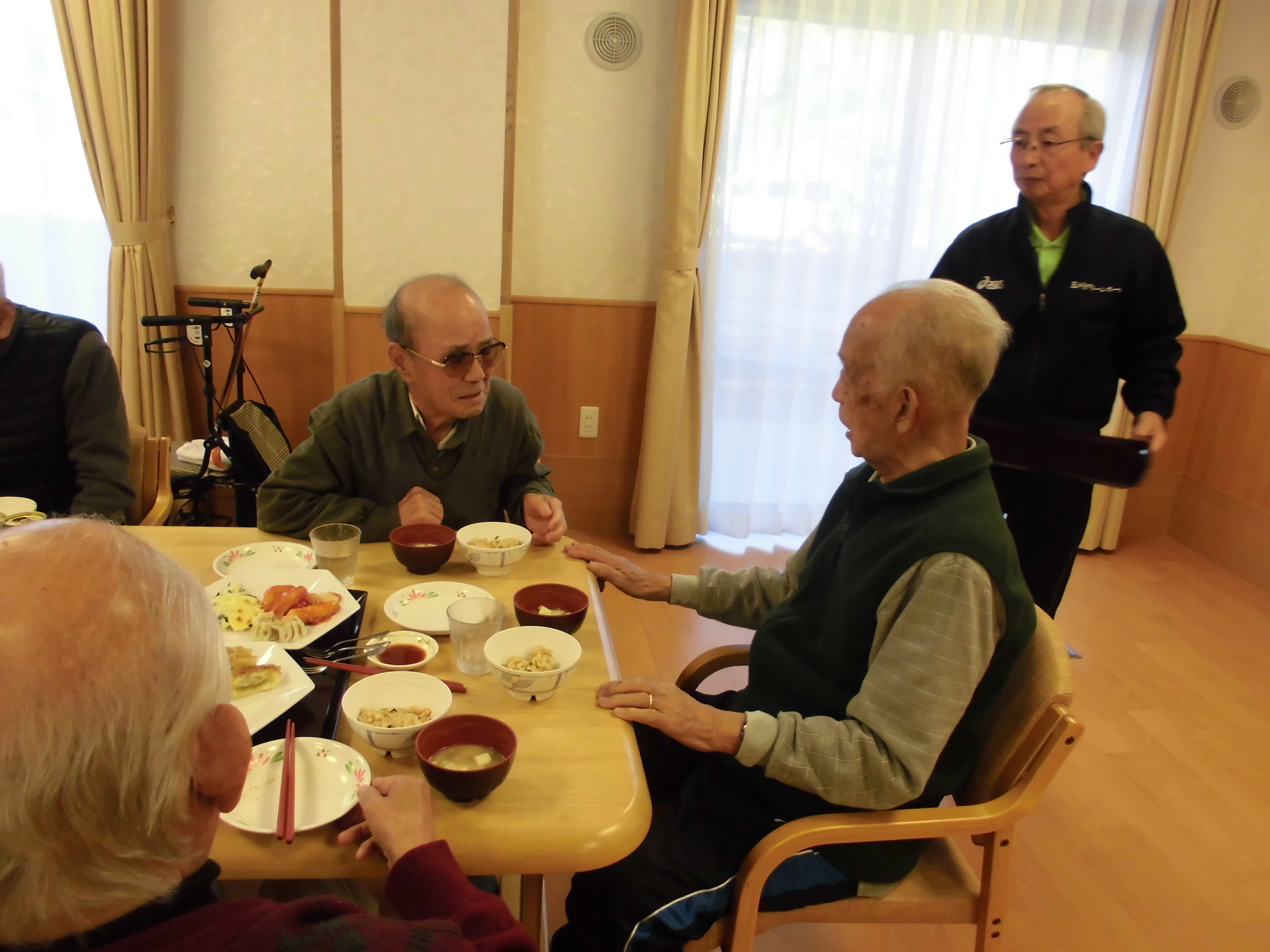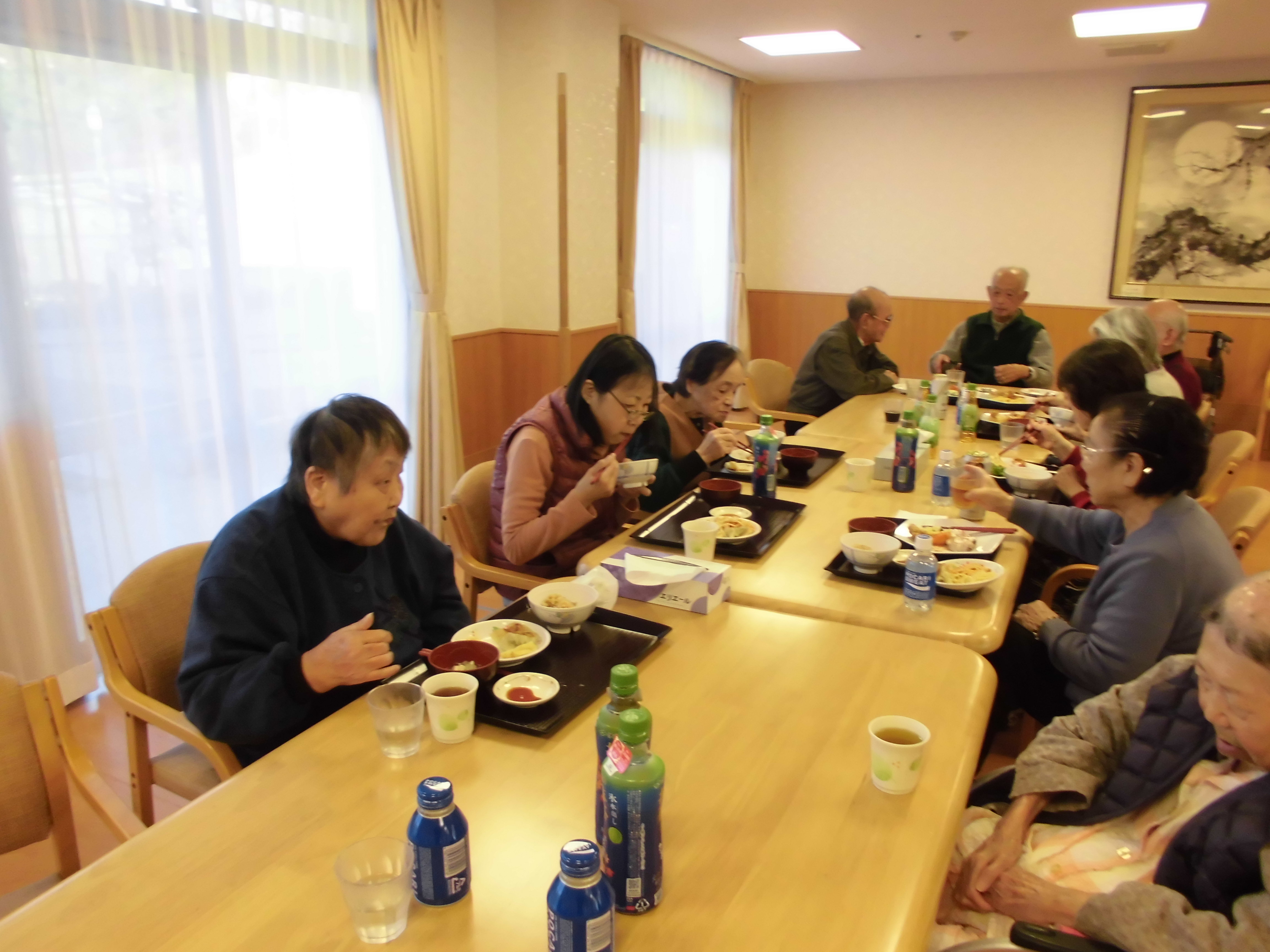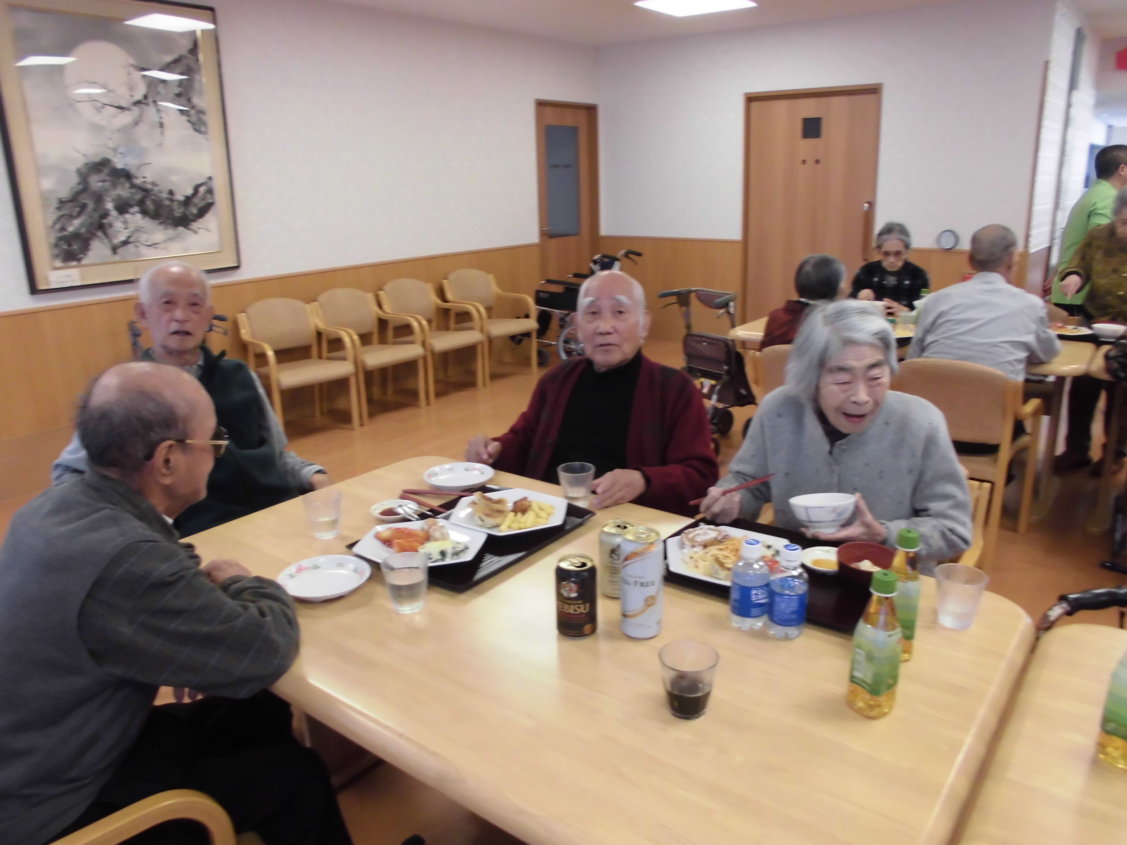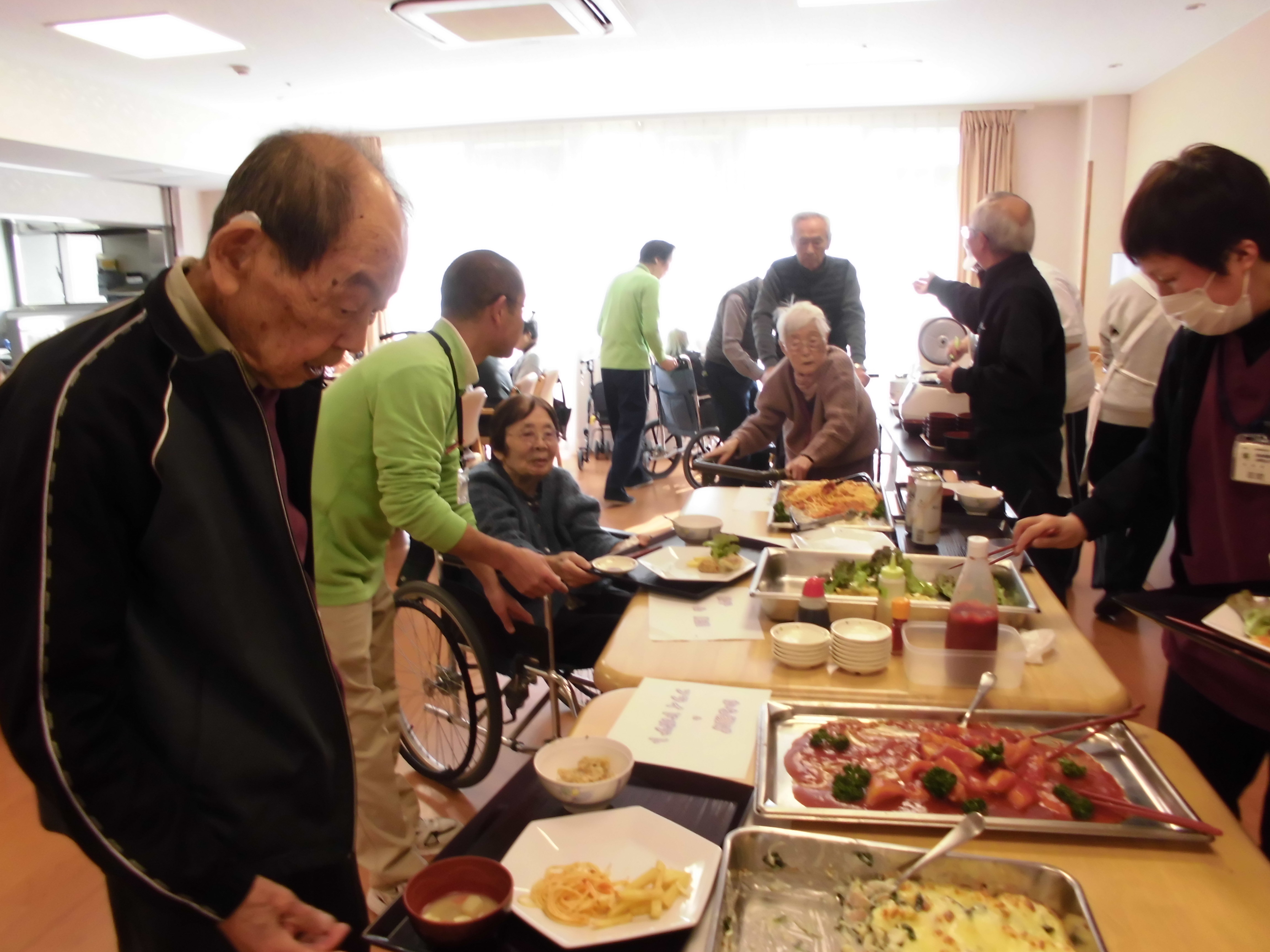 平成29年12月19日 小町山グリーンホームでクリスマス会・忘年会を開催しました。 厨房の星野さん、萩原さん、内藤さんが腕を振るって作ってくれた料理をバイキング式で好きなものをゆっくりとおいしくいただきました。