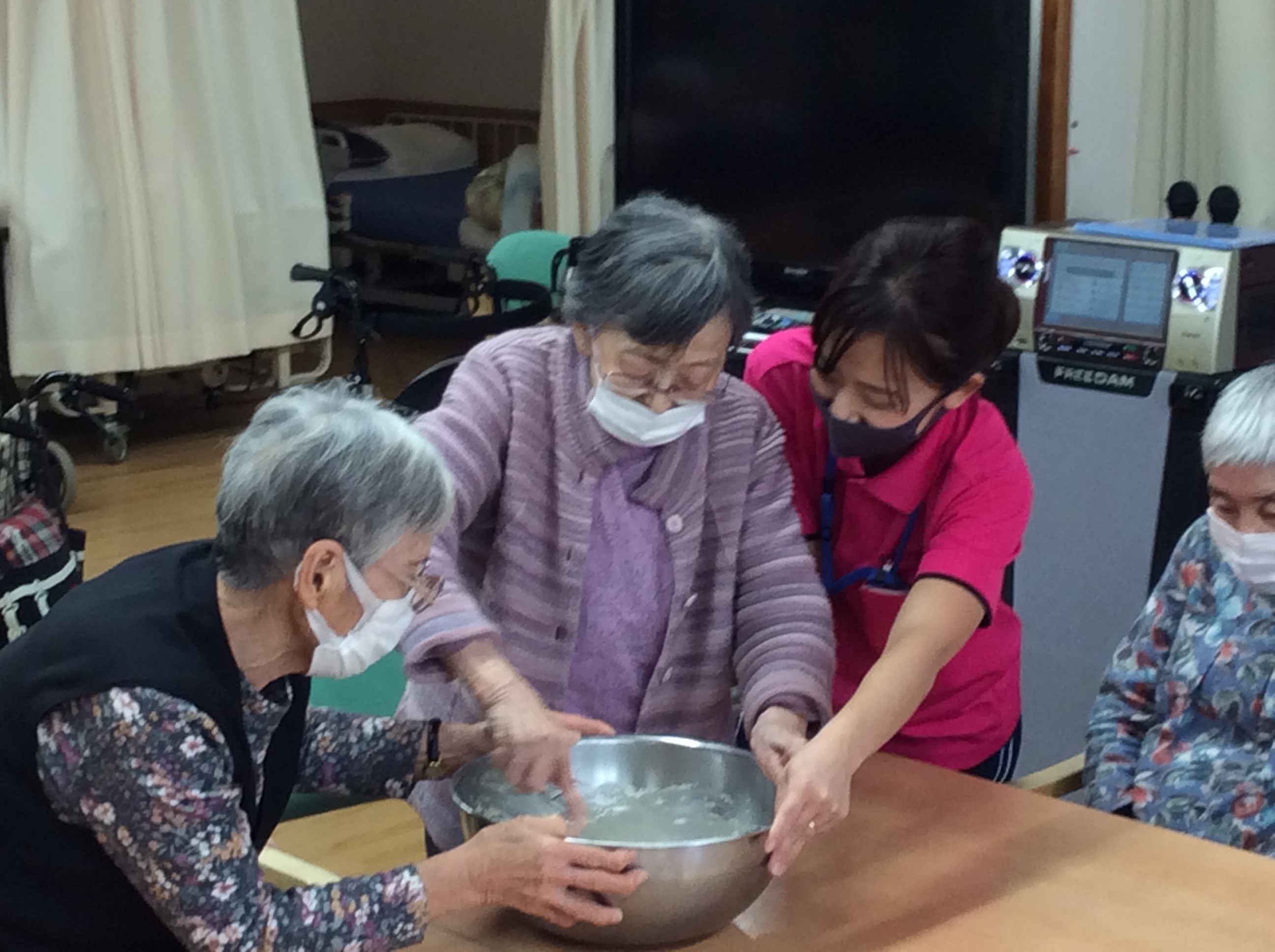 「うまくいくかな~」と言いながら、               皆さんと力を合わせえて、美味しそうな