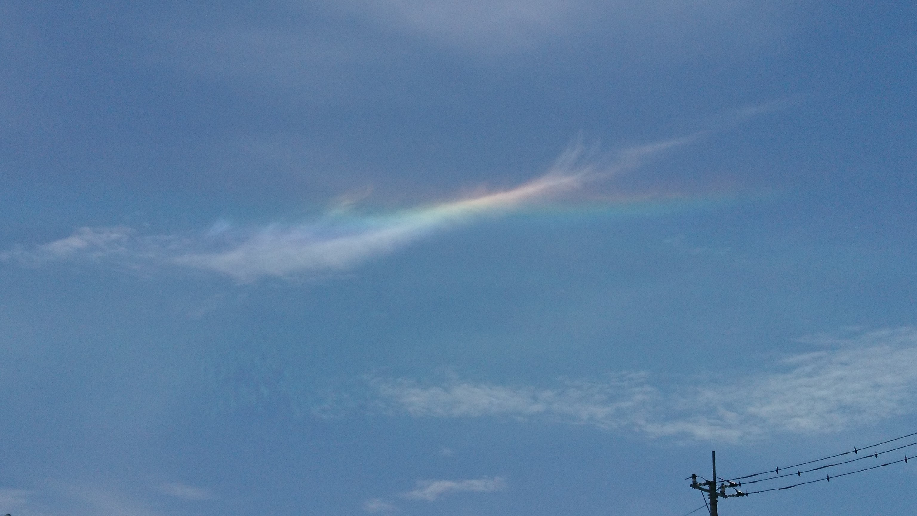 凄く判り辛いかもしれないのですが、先日施設から見た薄雲の上に虹色の光の帯が見えました。