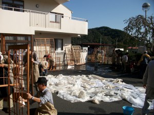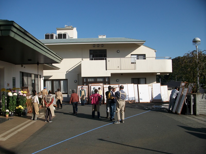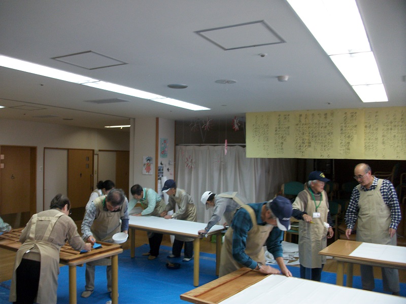 ボランティア団体 しじゅうからさんによります、 居室の障子の張り替えが行われました。