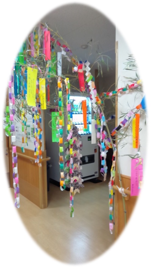 7月4日(土) 小町山での土曜の夕方のレクリエーションは“手芸(工作)・テーブルレクリエーション”です♪ 本日は「笹飾り」 「願い事はなんですか?」 「やっぱり“おいしいもの食べたい”よね★」 みなさんに今年も様々な願い事を書いていただきました。 雨続きのこの頃ですが、畑では雨にも負けずひまわりがとても元気に咲いています★ ~七夕には晴れますように~