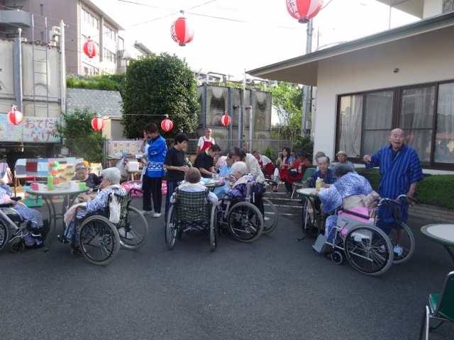 DSC03037 (640x480)ご利用者様も、外でお祭りの雰囲気を味わって頂きました。