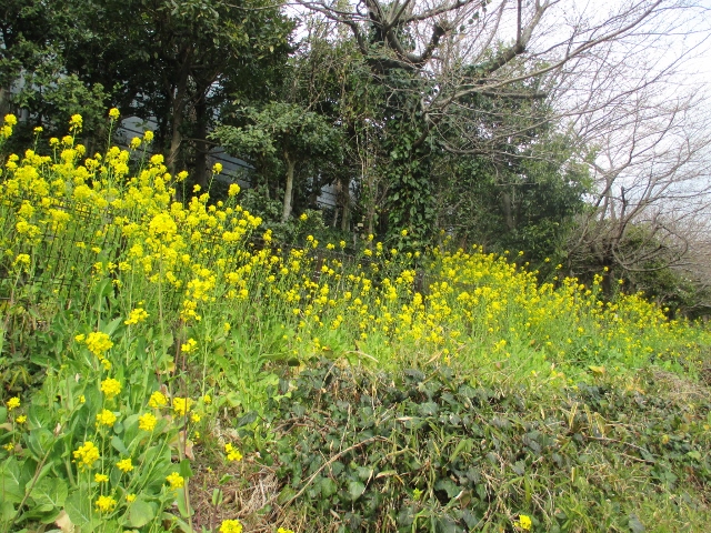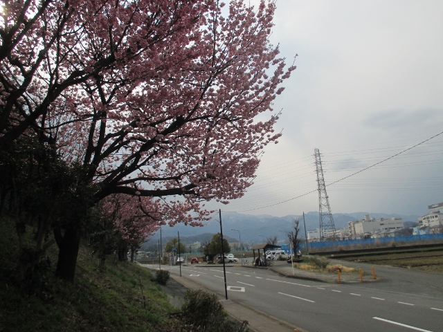 東名高速の道路沿いに桜と菜の花が咲いています。